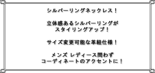 | 特徴 | キュイー発信 シルバーリングネックレス登場!シルバーリングが品よく仕上がった!シンプルなデザインは取り入れるだけでオシャレ感がアップ!存在感あるリングは雰囲気も倍増する!コスパも良くお求めやすい!男女問わずお使いいただけます。 |