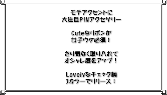 キュイー発信!ラブリーなチェック柄プチリボンモチーフピンバッジ登場!シックなシャツにCUTEな小物をチョイス!意外性をプラスで話題のモテ男子に^^ |