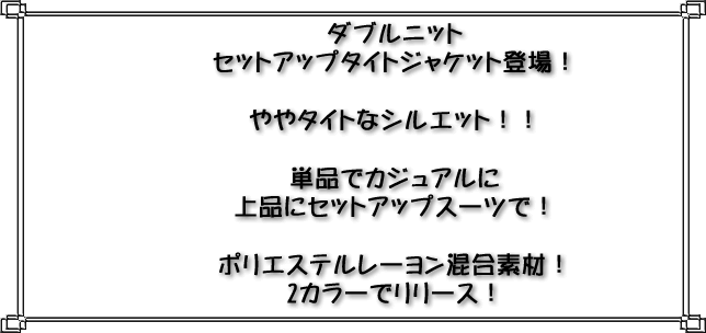 オリジナルダブルニットセットアップタイトジャケット登場!タイトなシルエットでもソフトなニット仕様で柔らかい着心地でです!