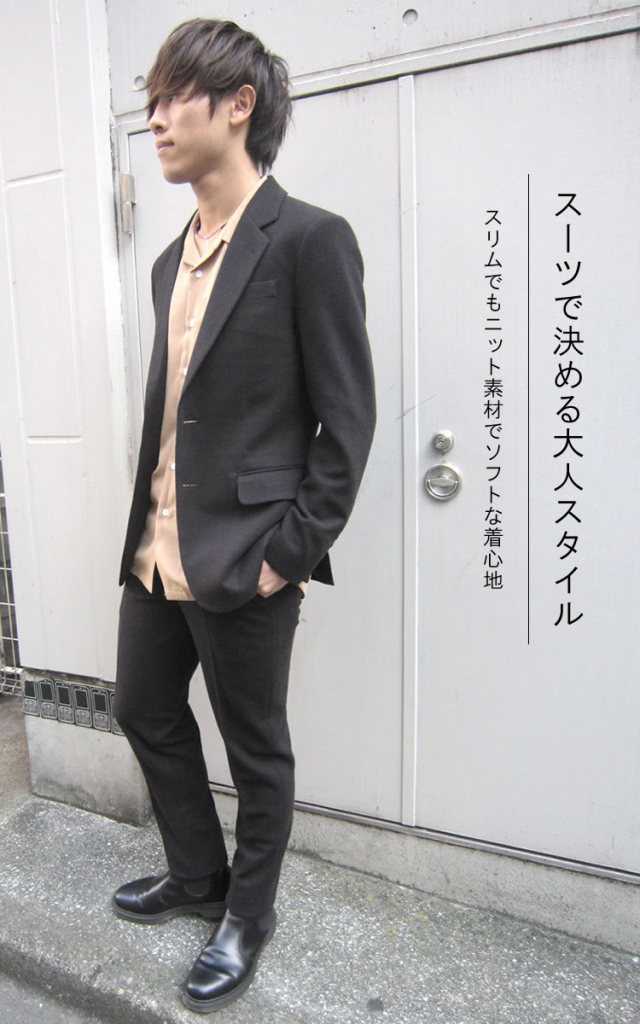 キュイー発信!オリジナルダブルニットセットアップタイトジャケット!ソフトな風合いニット仕様が温かみのある着心地!タイトなシルエットも伸縮加工で着こなしやすくスマートに着こなせる!しかもパンツも登場でセットアップスーツとして着まわせる!2カラーリリース! |