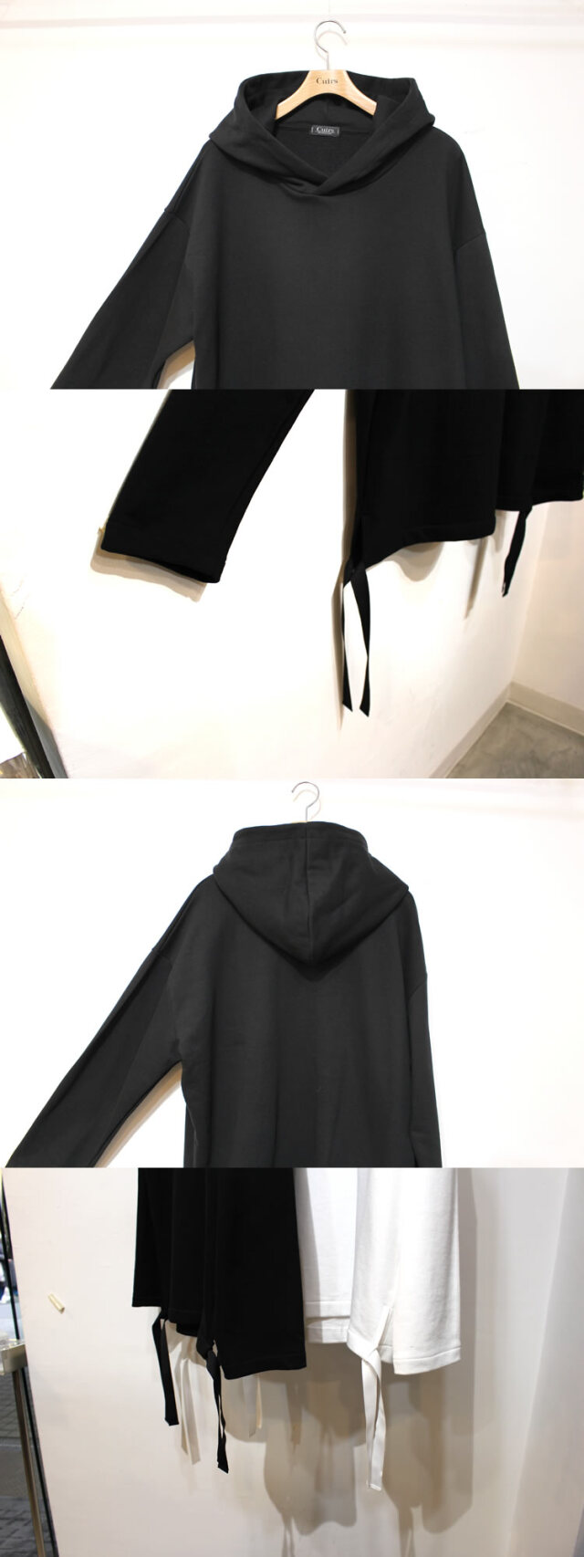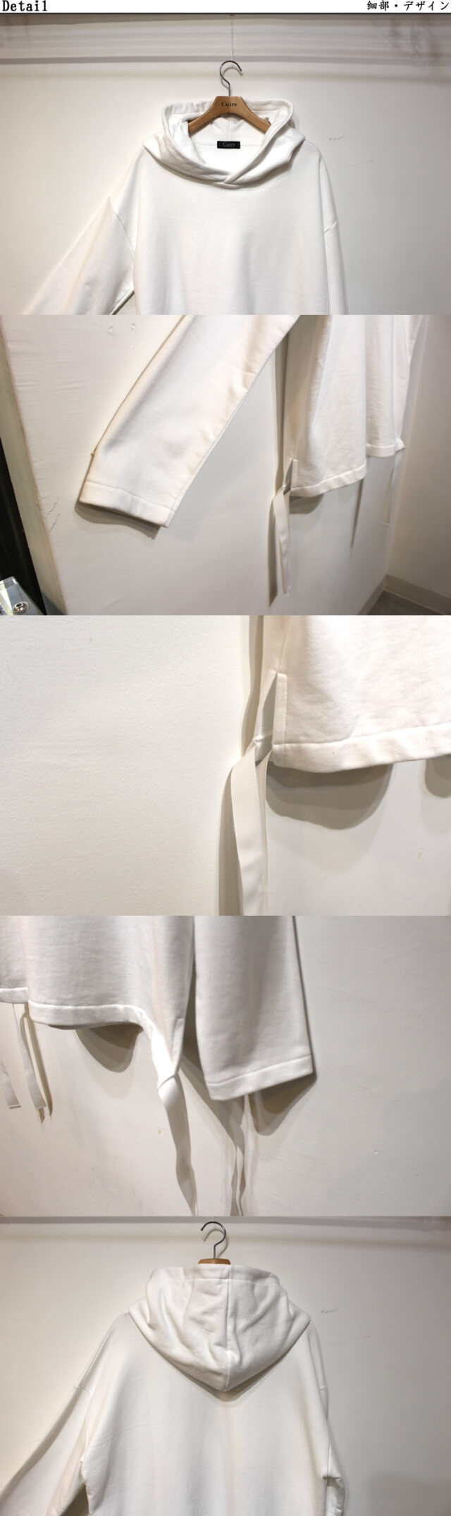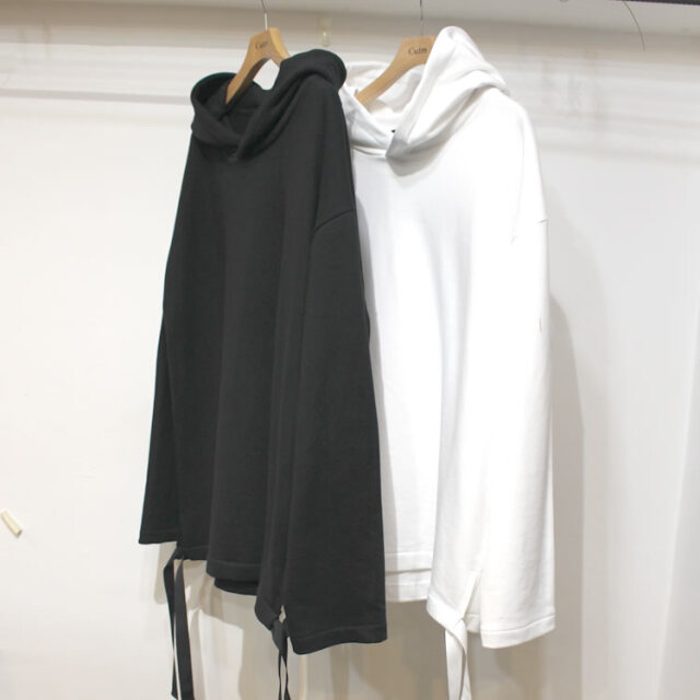 キュイー発信 サイドドローコードフードビックパーカー登場!話題のドローコードがついたビッグフードパーカー。ドロップする肩幅、ゆとりある身幅、やや長めの着丈の旬な要素を採用。サイドの大胆なスリットにドローコードがついて自由な着こなしも楽しめる!程よいユルめのサイジングは、インナー用途にも対応可能な長いシーズン着用できるおすすめパーカー!カラーはモントーン2カラーで登場! | スタッフコメント |