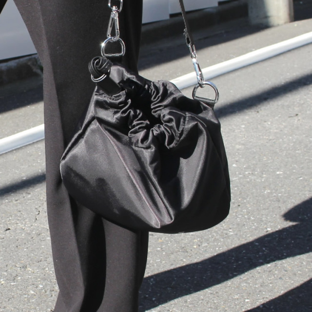 2ウエイ巾着ショルダーポーチ登場!小ぶりな巾着型はショルダーとしても使えてスタイリッシュに旬コーデに最適!!