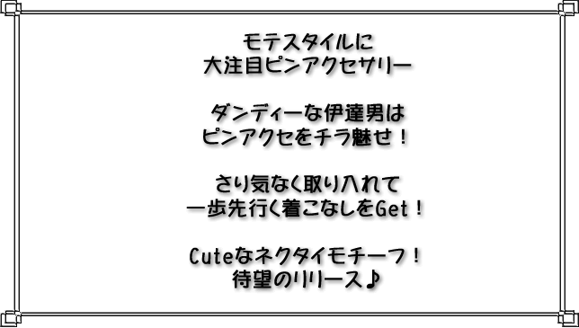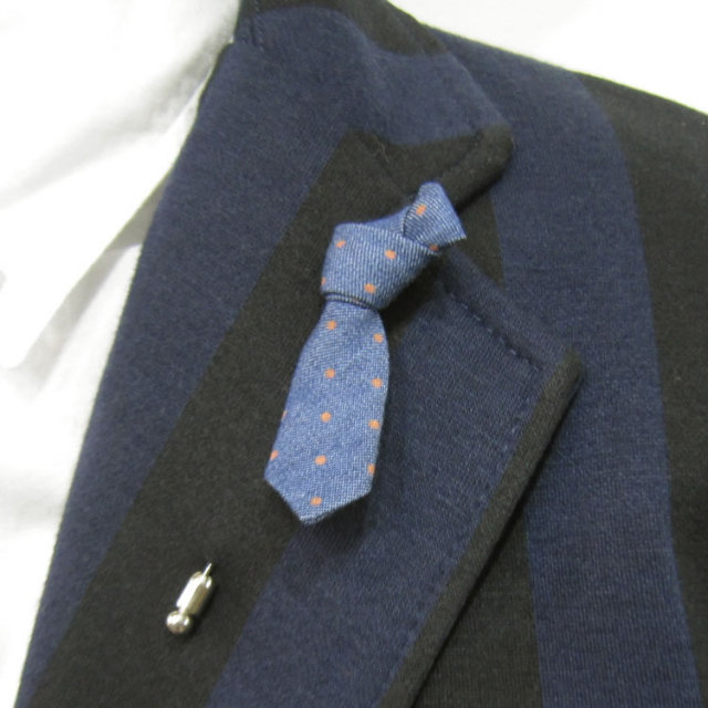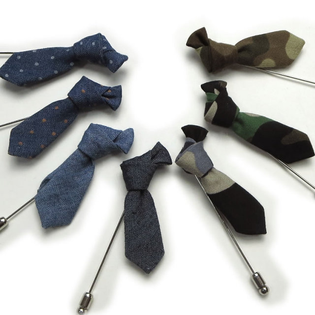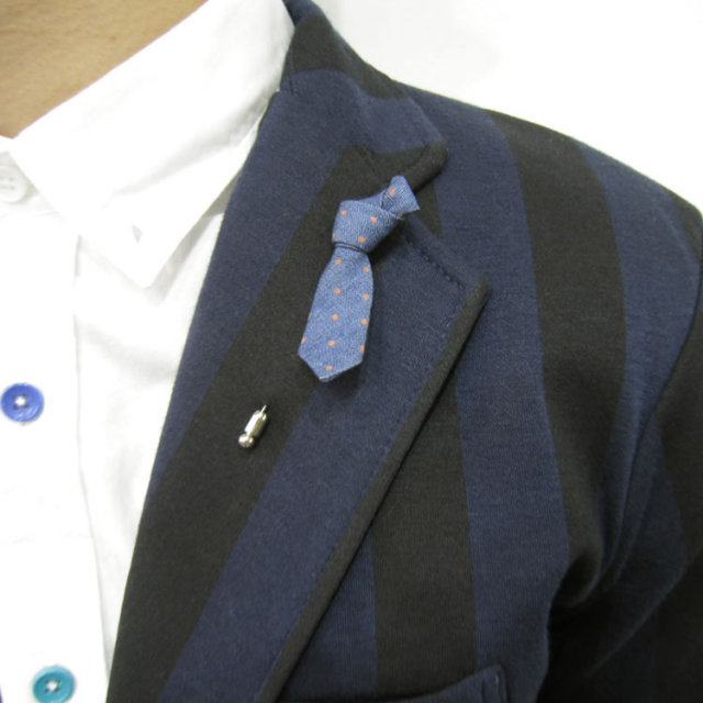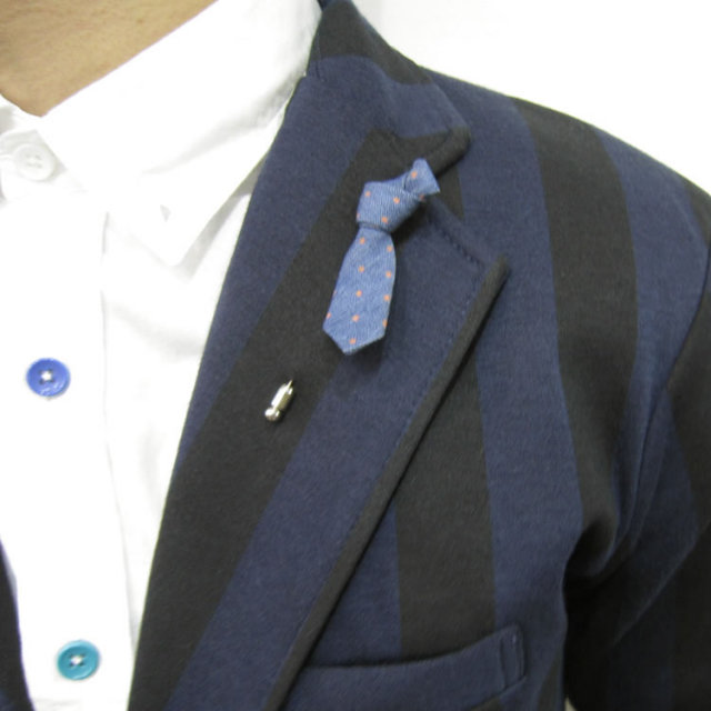 キュイー発信!ネクタイモチーフラペルピン登場!Cuteなネクタイにピンバッチがついた!柄も3パターン7カラー!上級コーデにチョイス! |