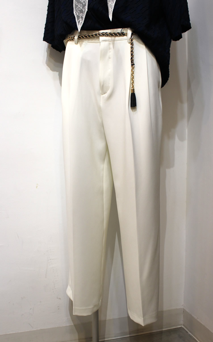 フロントには重なりのあるタックを施し、その中にセンタープレスを加えることで、奥行きのある立体感とクリーンな印象を両立!
