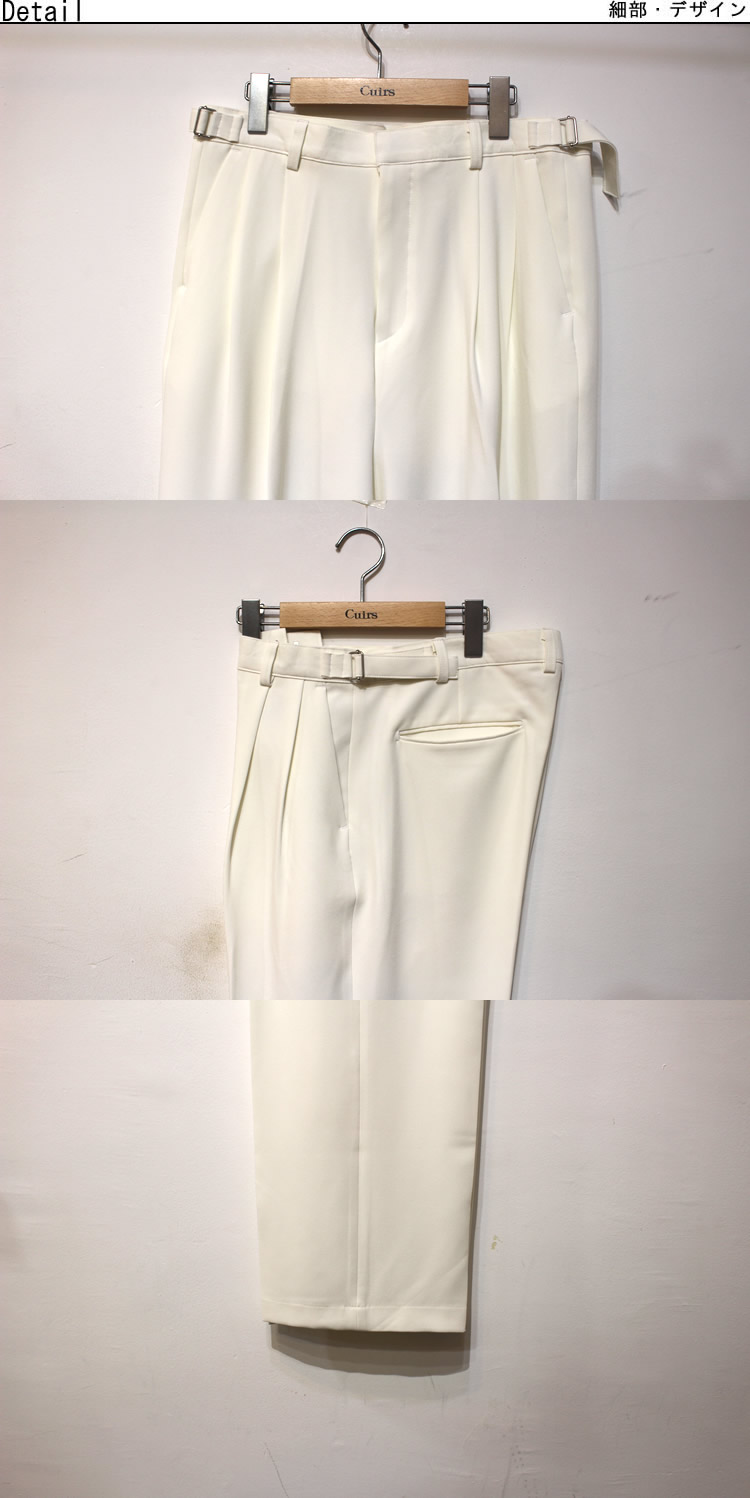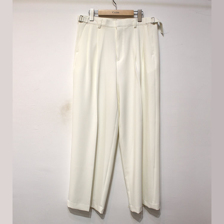 キュイー発信!定番のワイドシルエットに、立体的なタックデザインを落とし込んだ、美しいシルエットが際立つサイドビジョウワイドパンツ入荷!