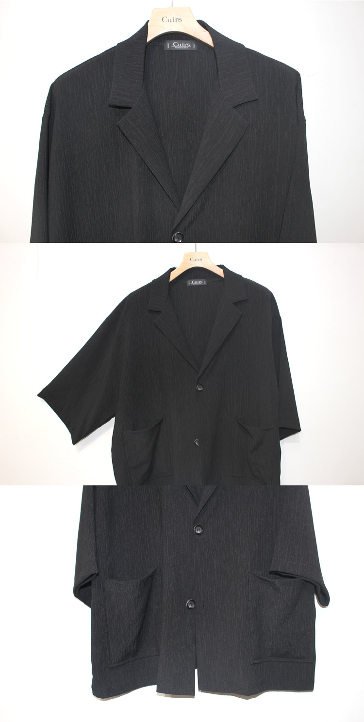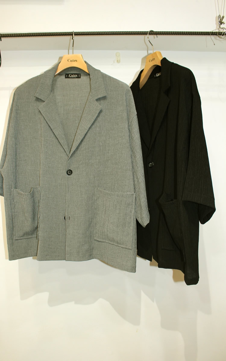 ウエーブプリーツセットアップ半袖JKT登場!伸縮あるプリーツ素材は清涼感あって真夏スタイルに最適!