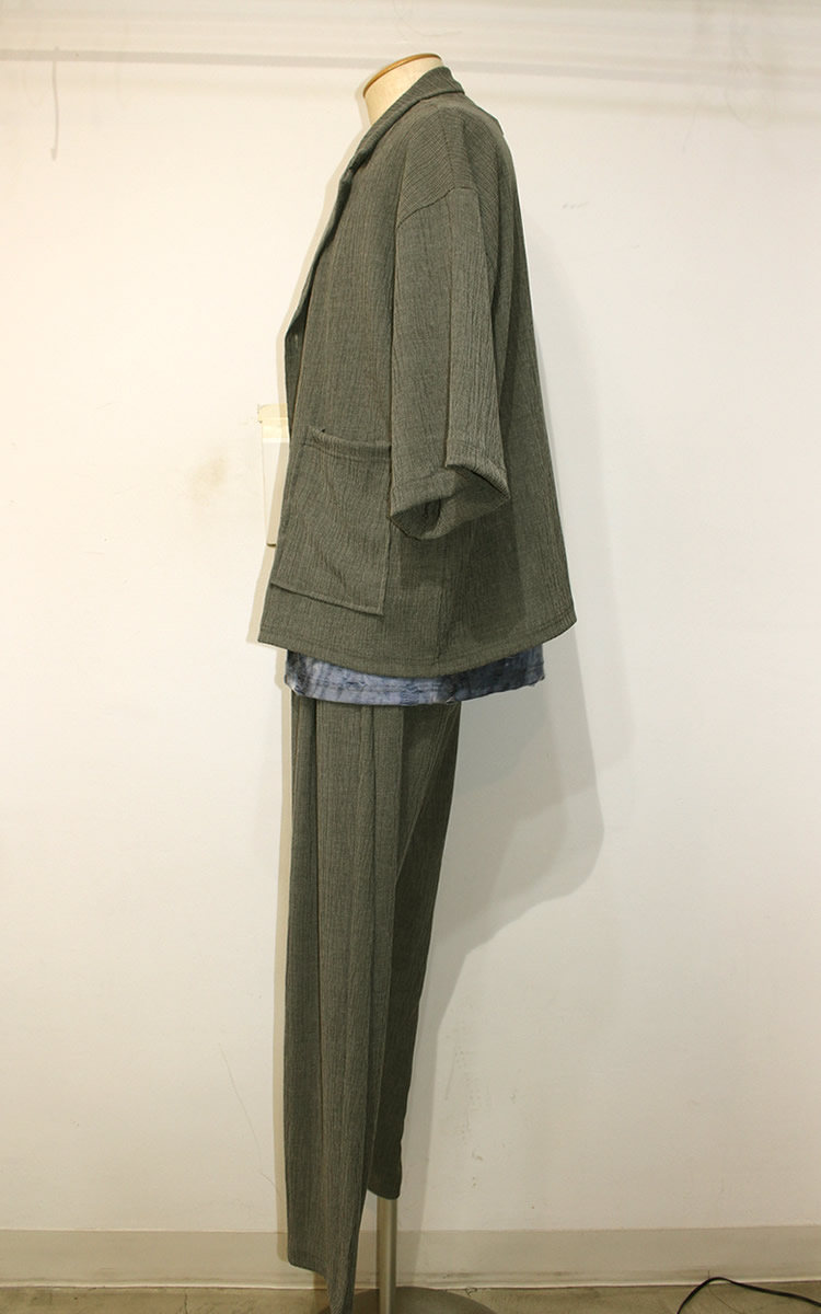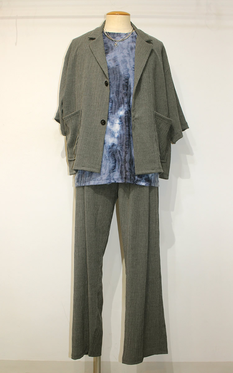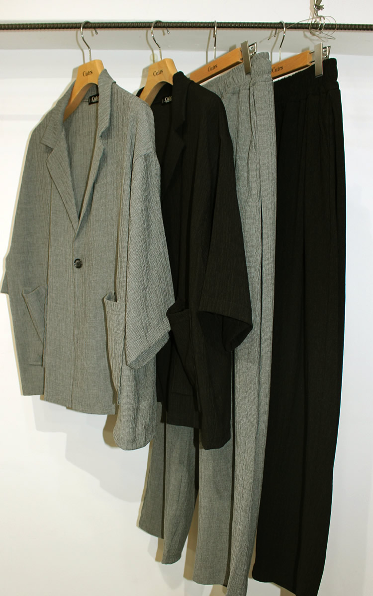 パンツも登場でセットアップとしてスーツとしても着まわせる!グレー・ブラック2カラーで登場! | モデルコメント |