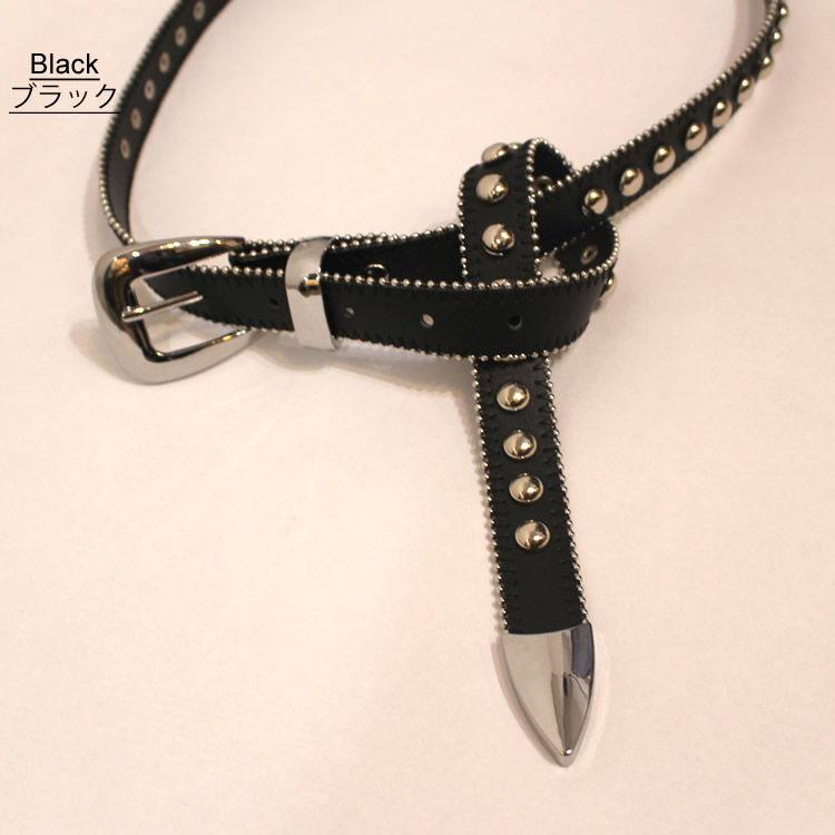 シルバーバックルとスタッズがウエストアクセントになる細めベルト!