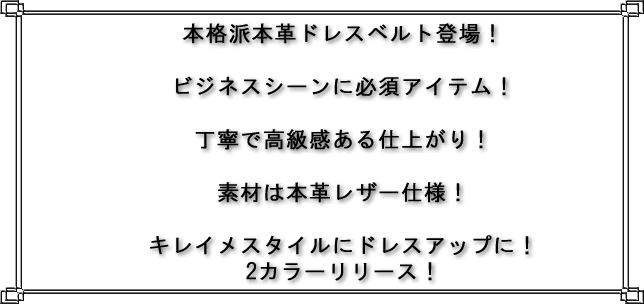 本革レザードレスベルト登場!丁寧な仕上がりは高級感あり!カジュアルスタイルからビジネス、パーティーシーンまで!