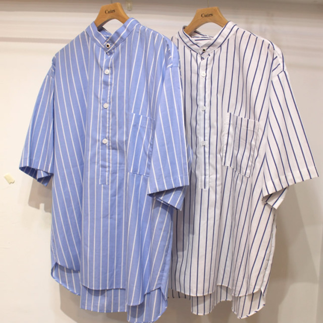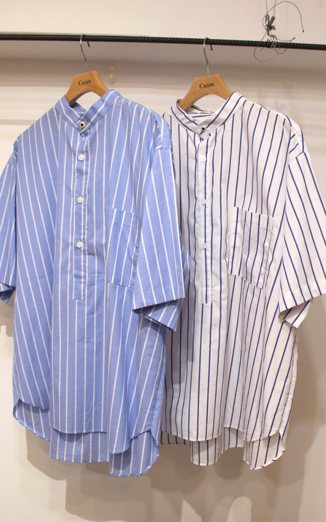 プルオーバーバンドカラーシャツ到来!爽やかなストライプが酷暑に映える夏のプルオーバーシャツ!