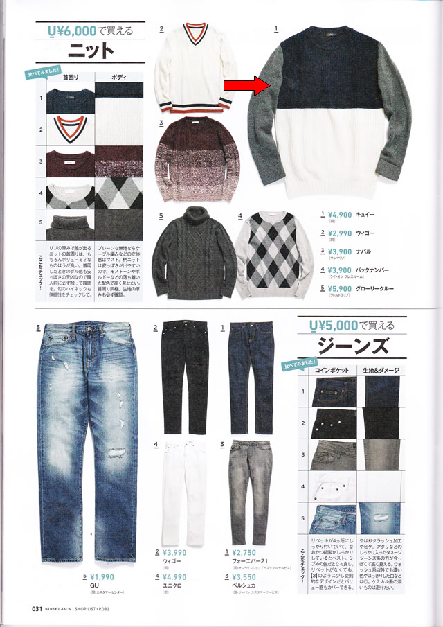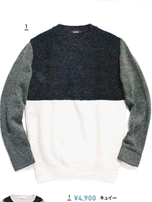切り替えゴム編みクルーネックニット