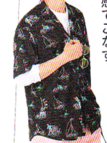 フィッシング柄プリント半袖開衿シャツ ロング派手色ガチャベルト