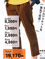 コーヂュロイ9分丈ラインパンツ ストレッチハイネックカットソー