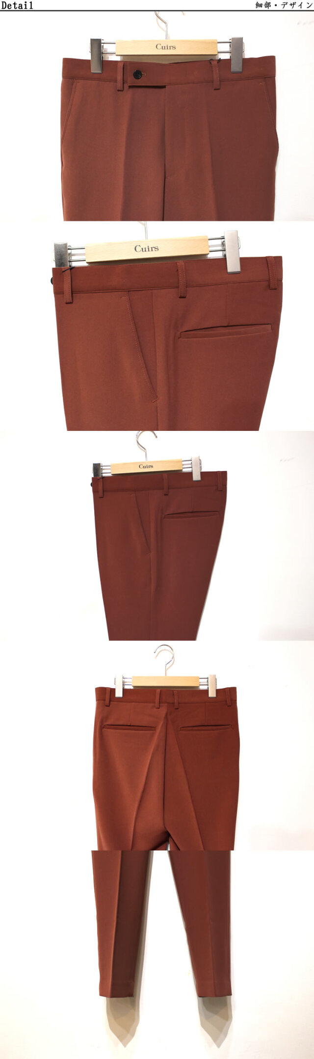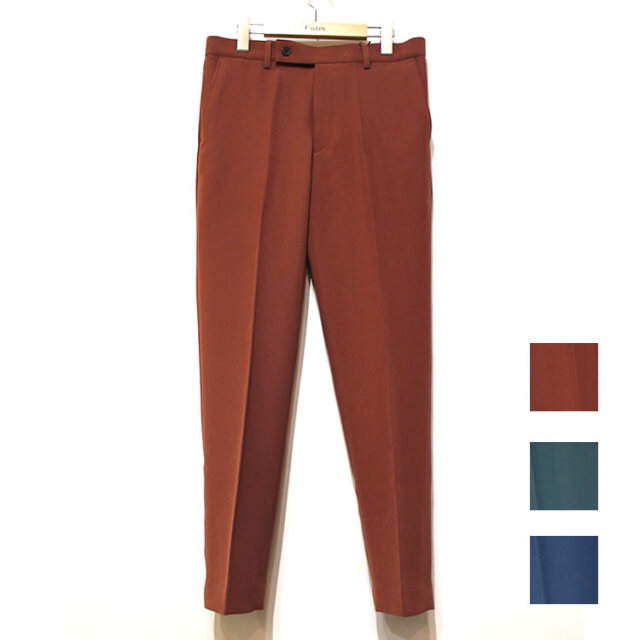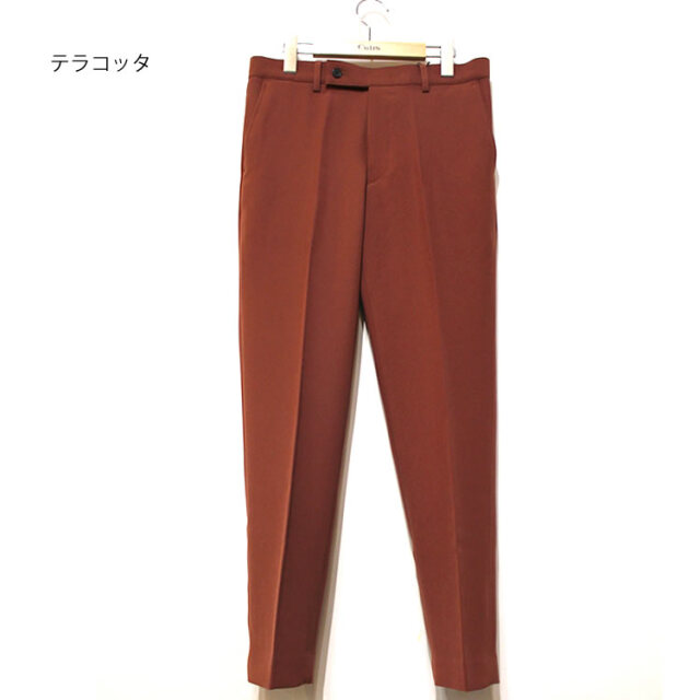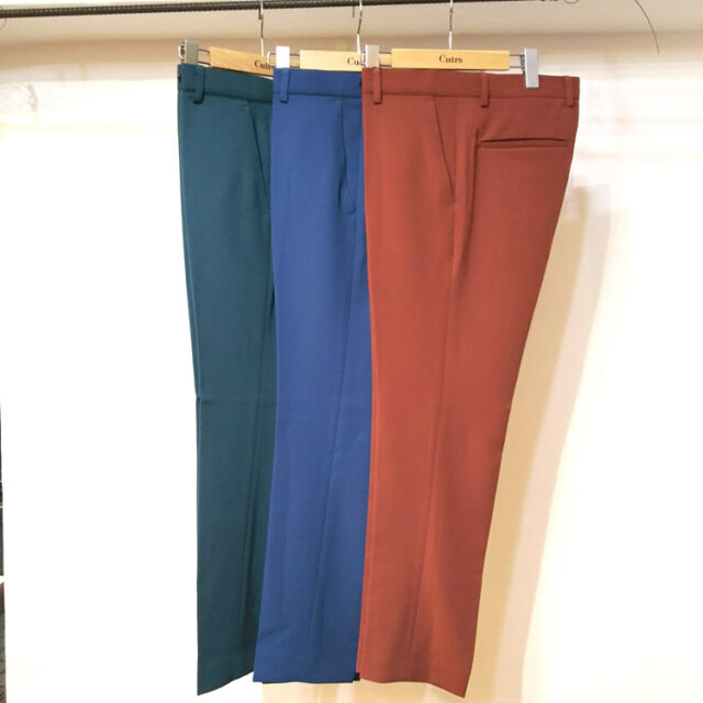 キュイー発信 パントンカラースリーピースセットアップパンツ登場!オーソドックスなノータックのテーパード美脚デザイン。