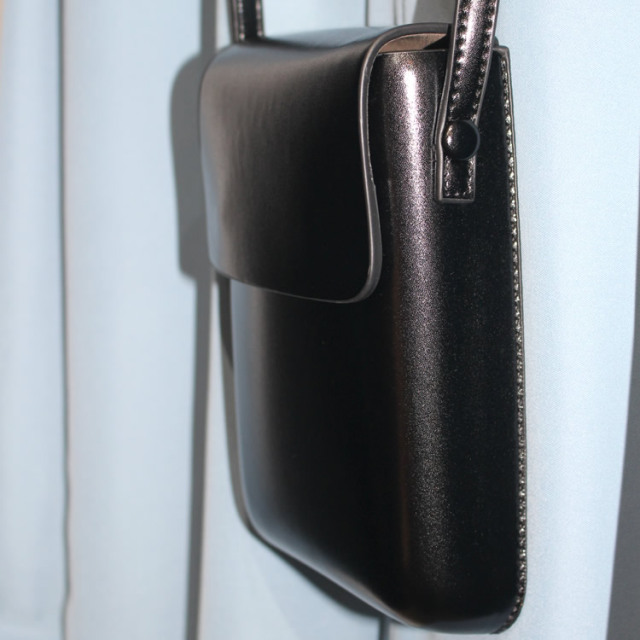 ボックスショルダーバック!コンパクトなボックス型が使いやすい!光沢感ある合皮で品よく仕上がった!ショルダー紐は調節可能