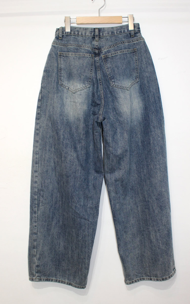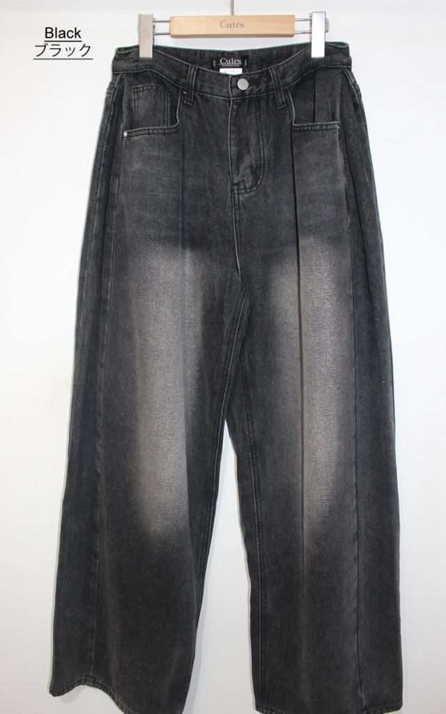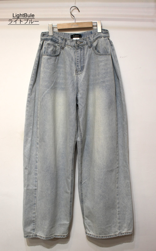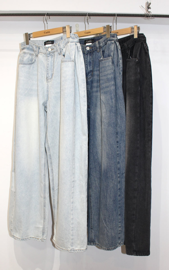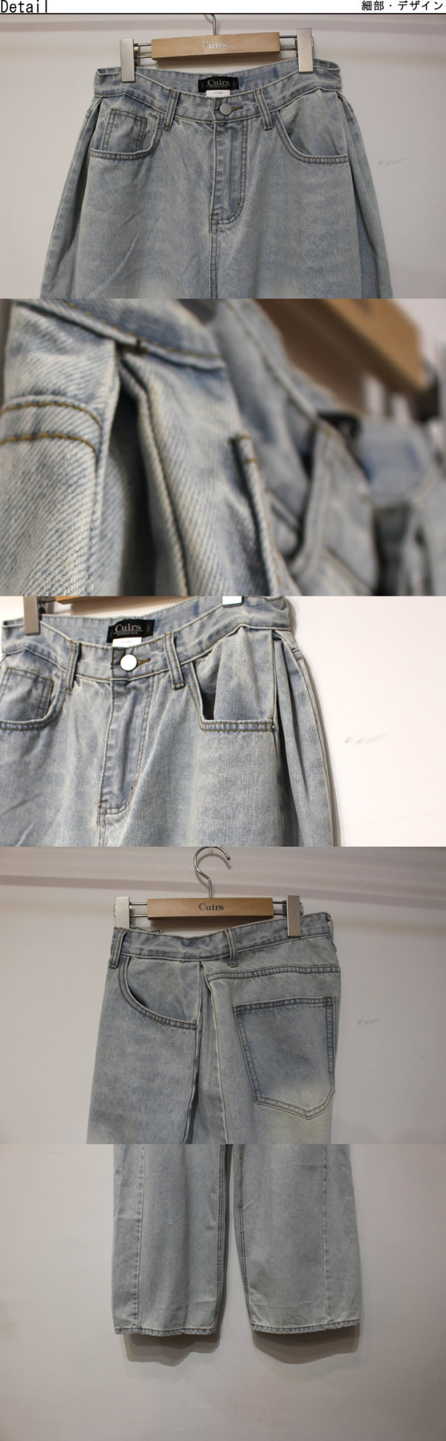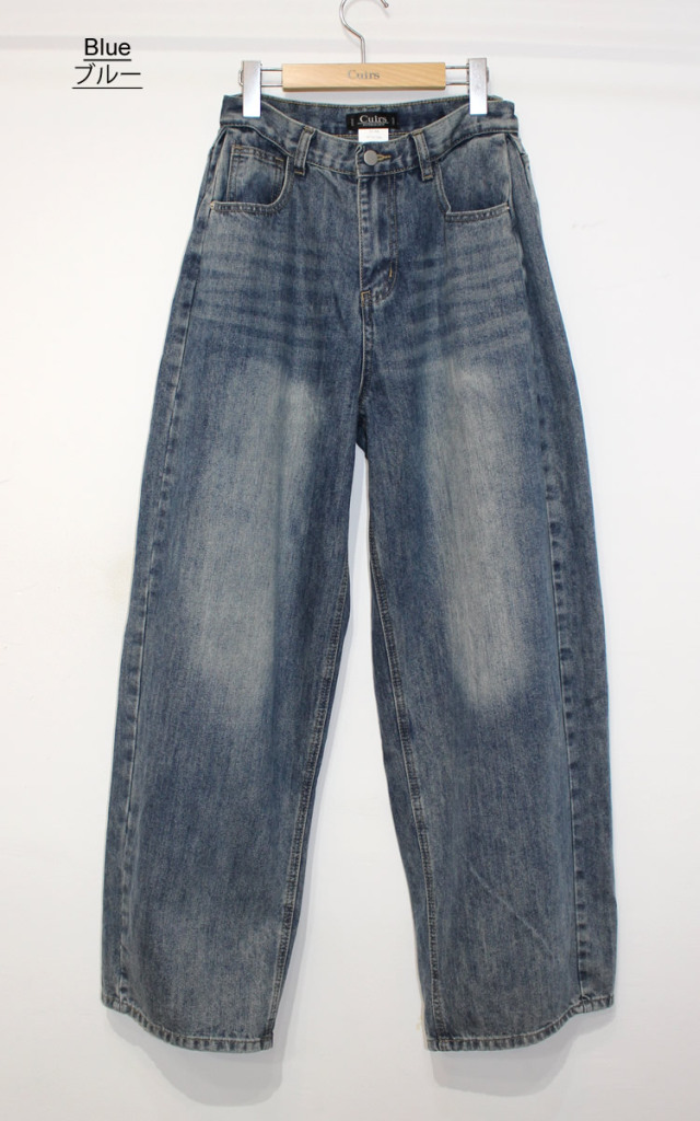 キュイー発信 サイドピンタックワイドバギージーンズ登場!全体的に太くてゆったりしたワイドシルエットでヴィンテージ感溢れる高見えするデザイン! もも回りから裾にかけてストンと落ちるワイドシルエットは脚長効果抜群! 古着のようなヴィンテージ加工がトレンド感溢れる仕上がりになっている! 素材は程よい厚みのあるコットン100%のデニム素材で デニム本来の経年変化を楽しむことができ、ヴィンテージ感溢れる生地感は古着ライクやストリートなスタイリングにぴったりなアイテム!サイズはXS・S・Mサイズで登場!