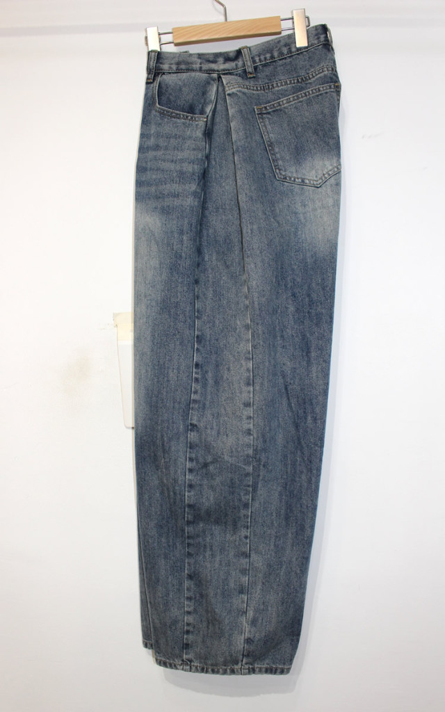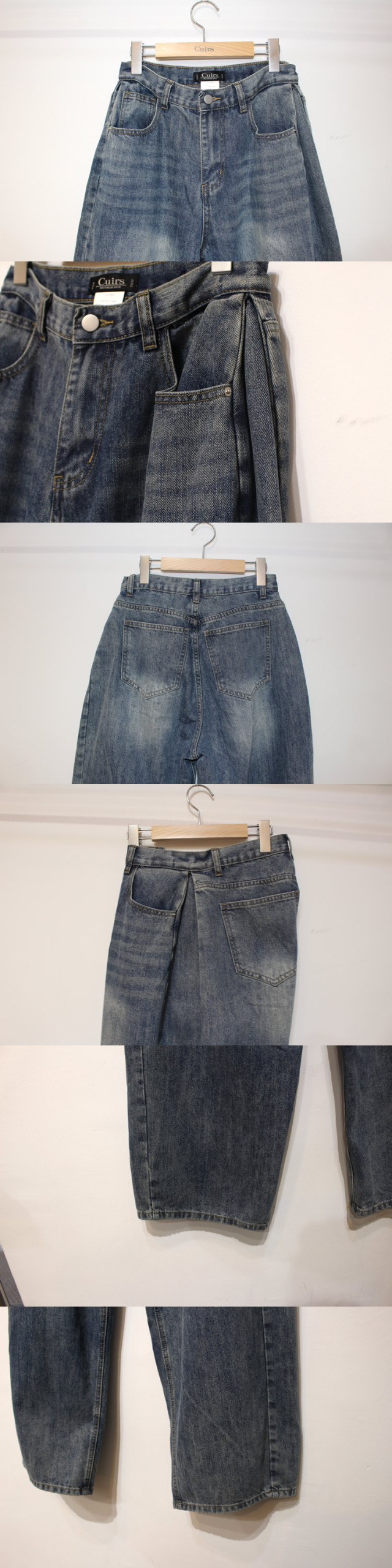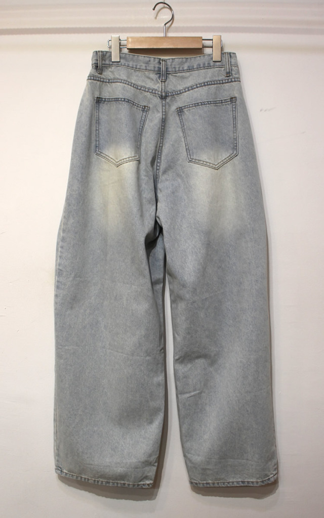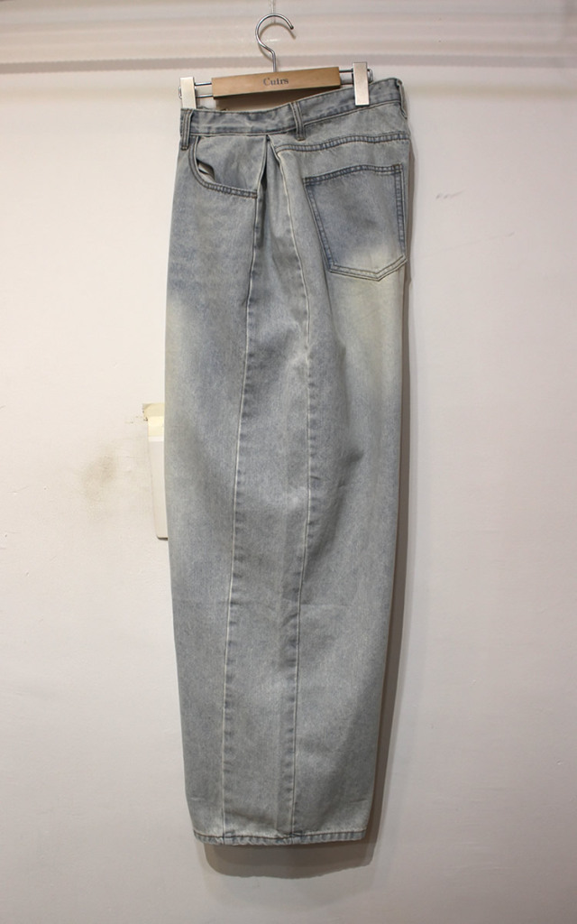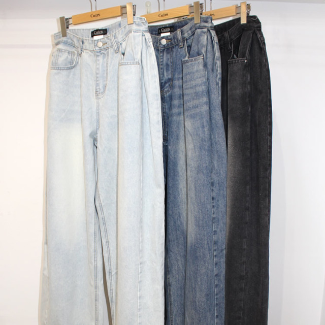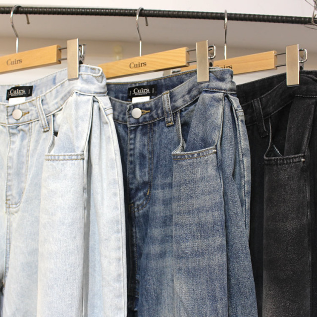 キュイー発信 サイドピンタックワイドバギージーンズ登場!全体的に太くてゆったりしたワイドシルエットでヴィンテージ感溢れる高見えするデザイン! もも回りから裾にかけてストンと落ちるワイドシルエットは脚長効果抜群! 古着のようなヴィンテージ加工がトレンド感溢れる仕上がりになっている! 素材は程よい厚みのあるコットン100%のデニム素材で デニム本来の経年変化を楽しむことができ、ヴィンテージ感溢れる生地感は古着ライクやストリートなスタイリングにぴったりなアイテム!サイズはXS・S・Mサイズで登場!