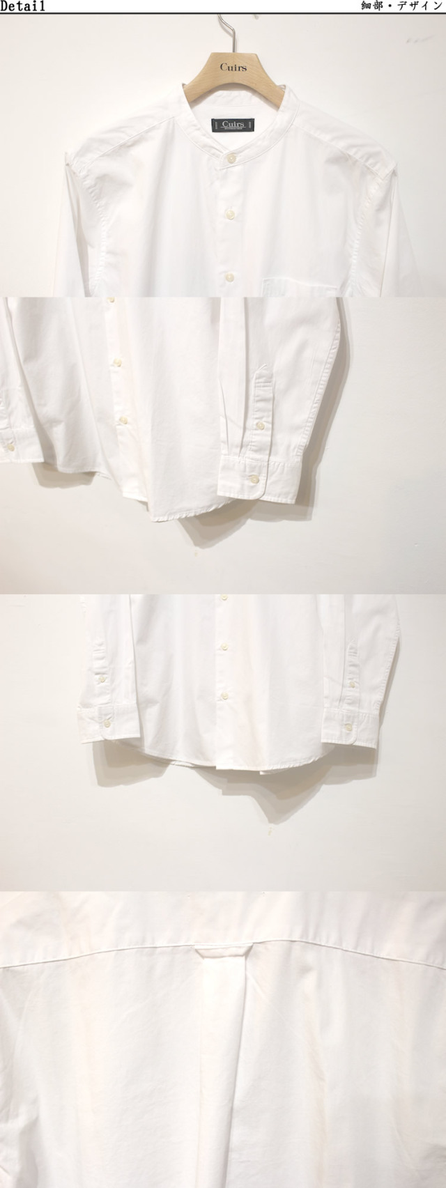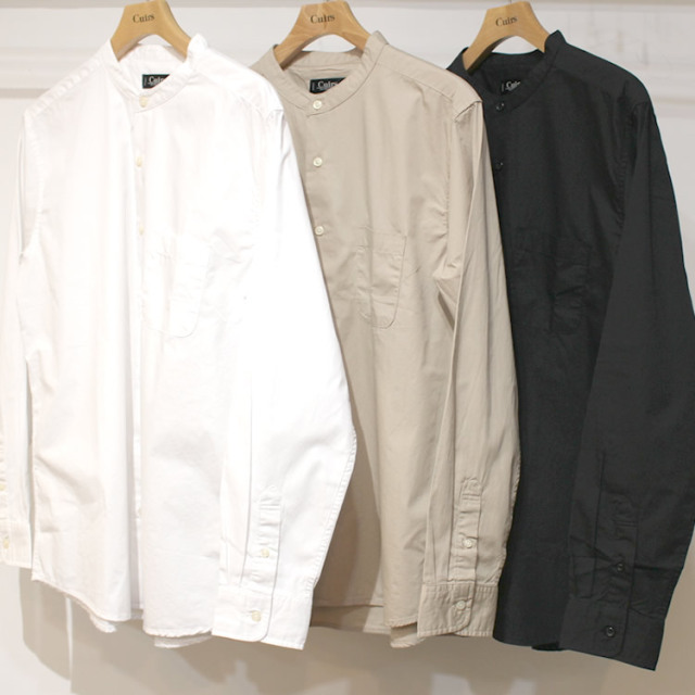 【新着】Cuirs(キュイー)メンズシャツ オリジナルバンドカラーブロードロングシャツ新作デザイン