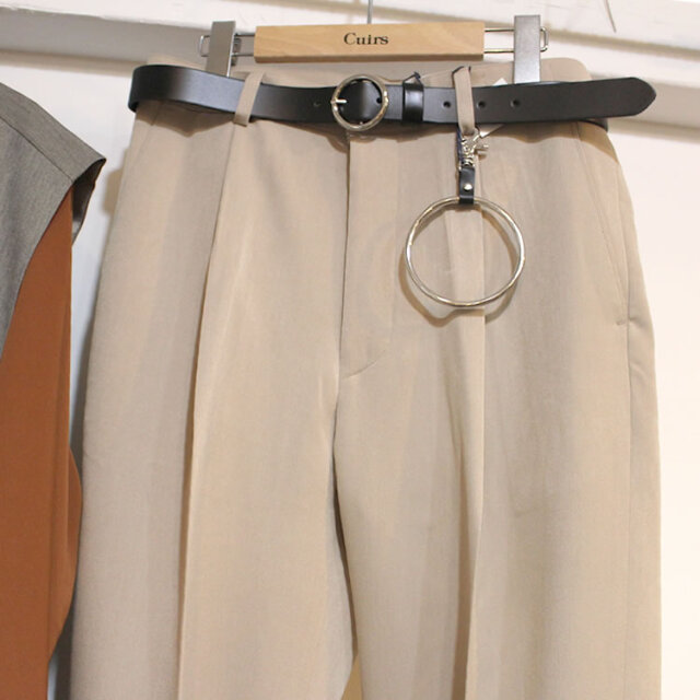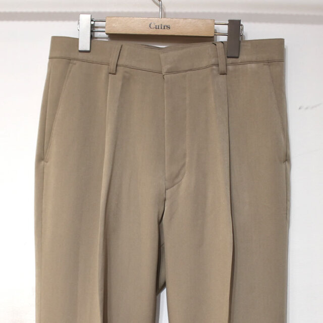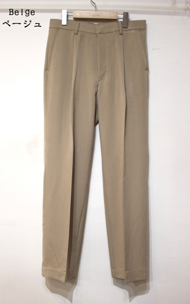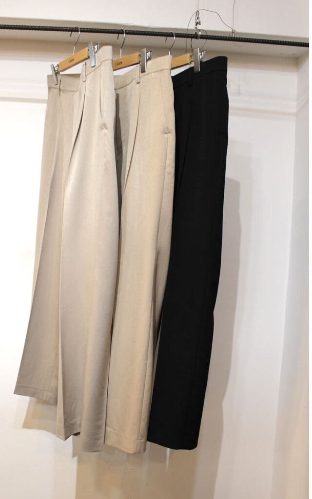 キュイー発信 ワンタックジャバジンスラックス!ソフトな風合いジャバジン仕様!ワンタック入りでウエストラインが綺麗仕上がり!センターラインが美脚効果も!3カラーで登場!