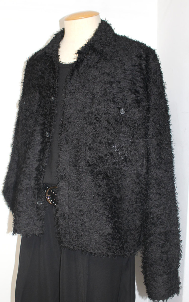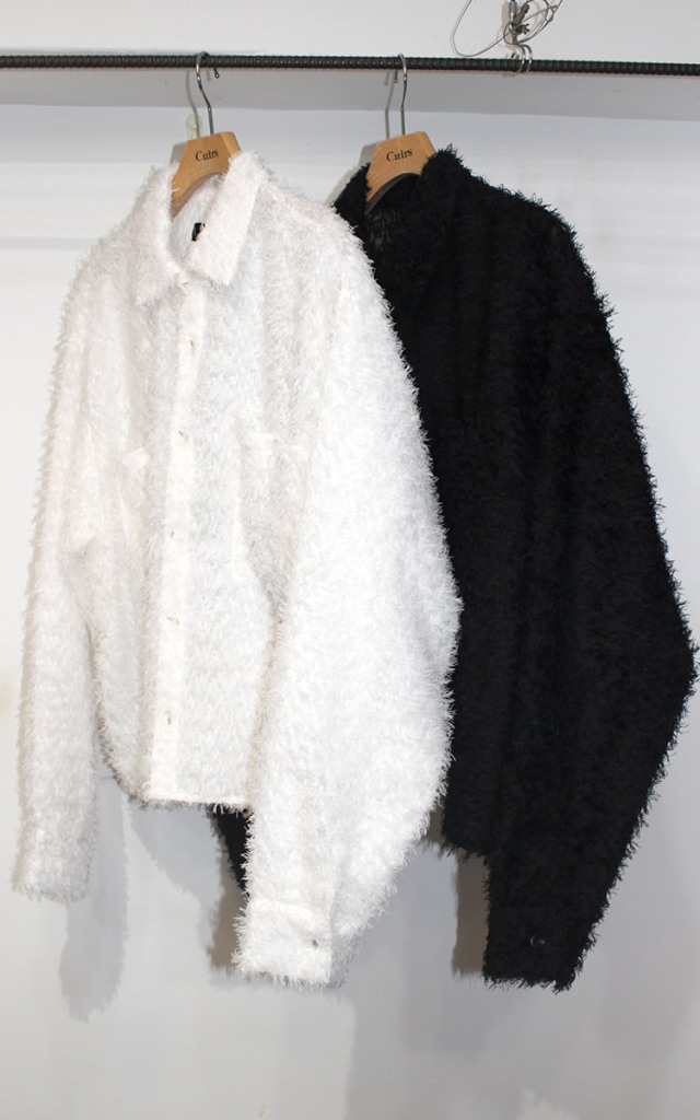 キュイー発信 モヘアを全体にあしらった、存在感抜群のクロップシャツ入荷! ベースは軽やかで透け感のあるシアー素材仕様! 透け感が奥行きを演出し視覚的にも手触り的にも楽しめる! 素材はポリエステル100%でソフトな着心地が魅力!クロップ丈はコナレ感あって着こなしに幅が広がる! 襟裏や台襟、前立て裏などには同布を重ねることで、薄手ながら型崩れしにくく、ヨレにくい仕上がりに! 程よい個性と上品さを両立した1枚は、スタイリングに差をつけたい時にぴったり! シャツアウターとしてさらにはモードやストリートスタイルのアクセントとしてもおすすめ! フリーサイズブラック・アイボリーで登場!