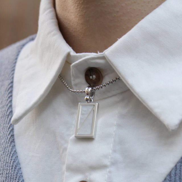 モデルコメント シャツの上からでもちょっとした胸元のアクセントにいいですね