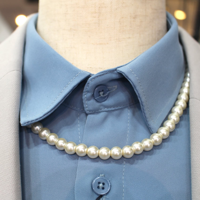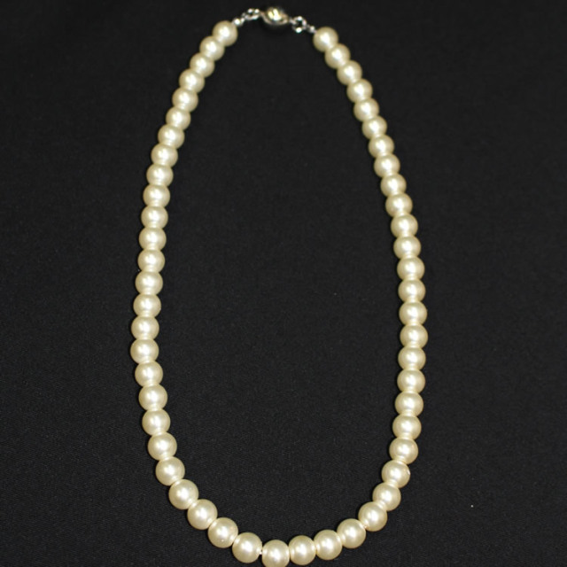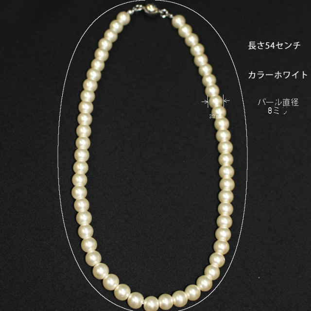 パールネックレス登場!首元をエレガントに飾るパールネックレス入荷!程よい大きさの8ミリ玉はメンズ仕様で付けやすい!長さ44センチと54センチで登場!