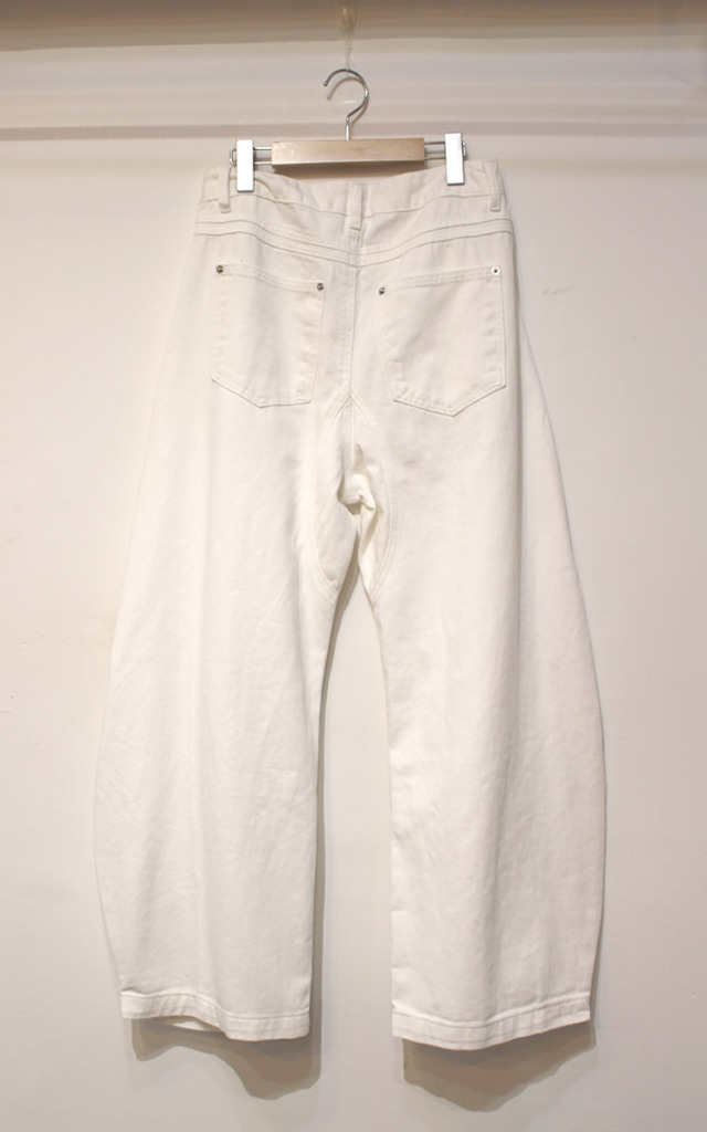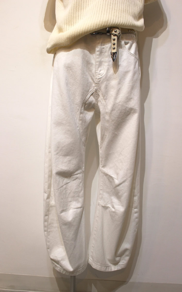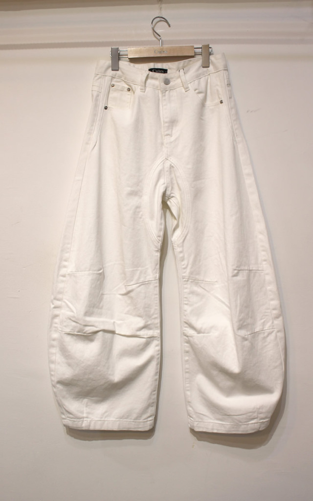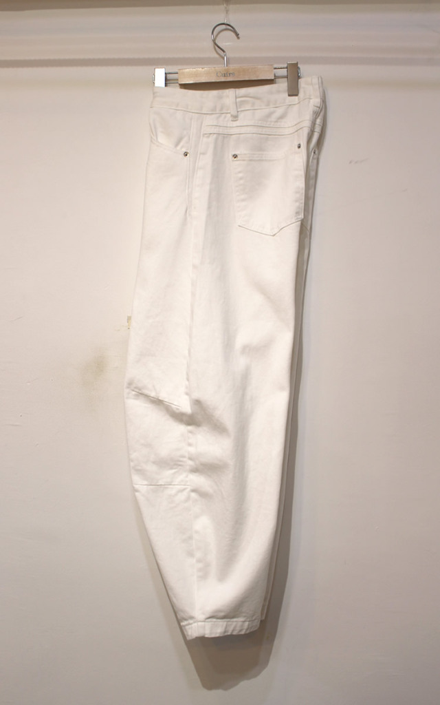 キュイー発信 奥行きあるシルエットと陰影が、動きにニュアンスを加えるコットンバルーンパンツ入荷! 立体感のあるシルエットが、存在感を際立たせる! 裾に向かって緩やかに広がるラインが、動きにニュアンスを加え、抜け感のある印象に! ワイドながらももたつかないライン設計で、バランスのとれたルーズ感を演出! 膝の控えめなタックが履きやすく奥行きある仕上がりに! しっかりとした厚みのあるデニム素材で、型崩れしにくく長く愛用できるタフさ コットンバルーンパンツホワイトで登場!