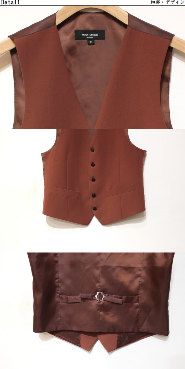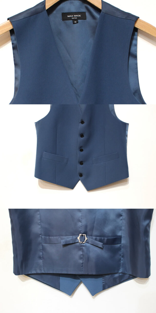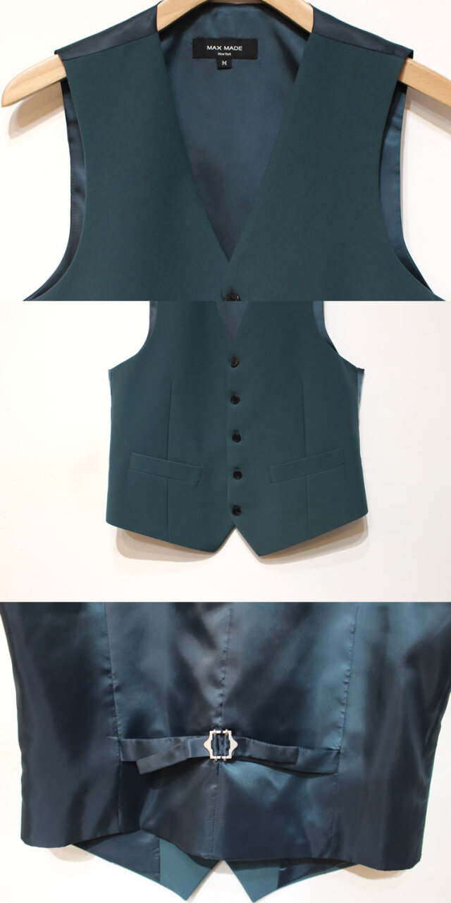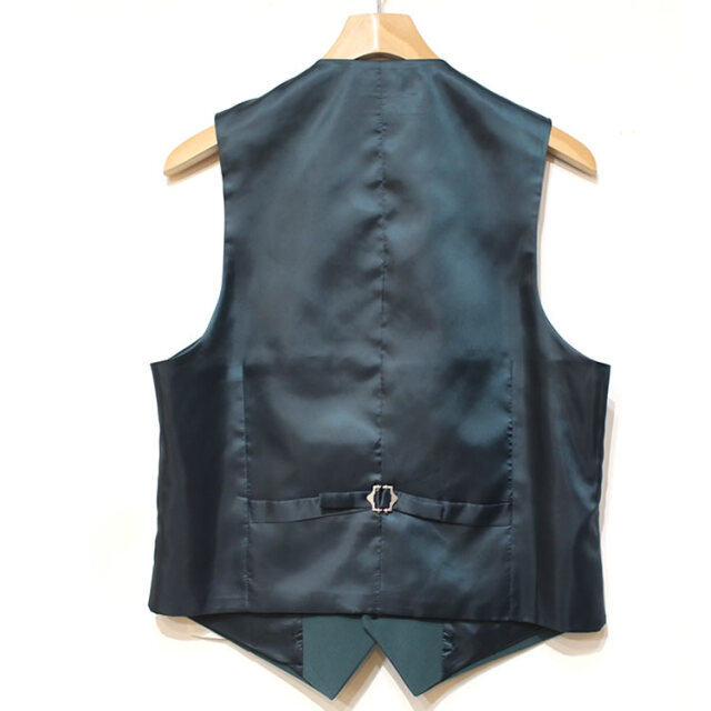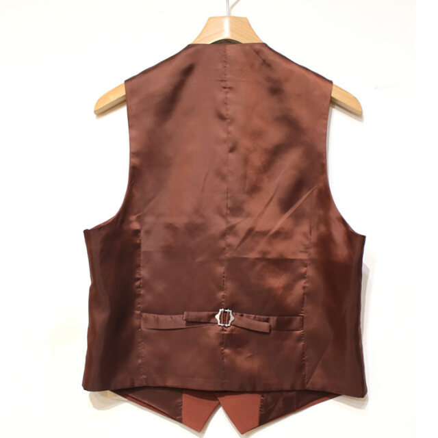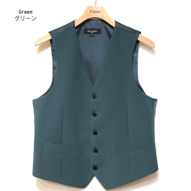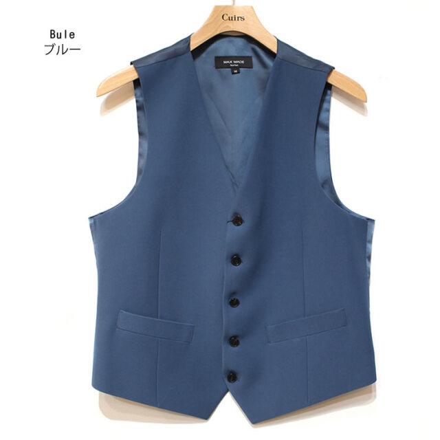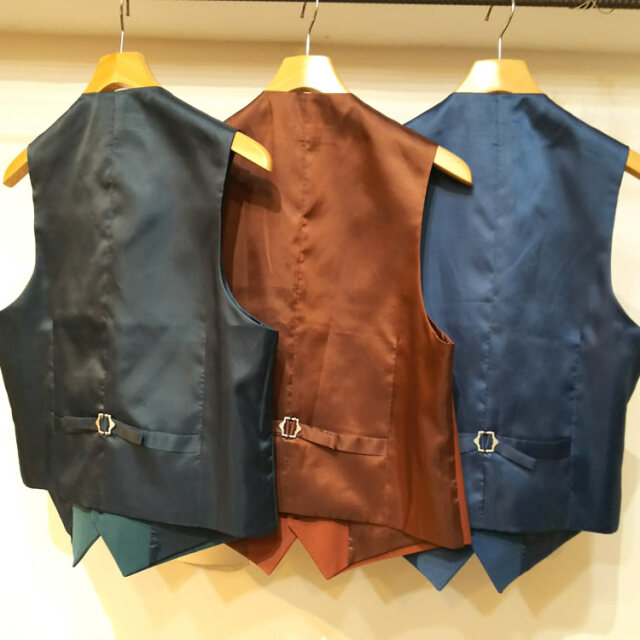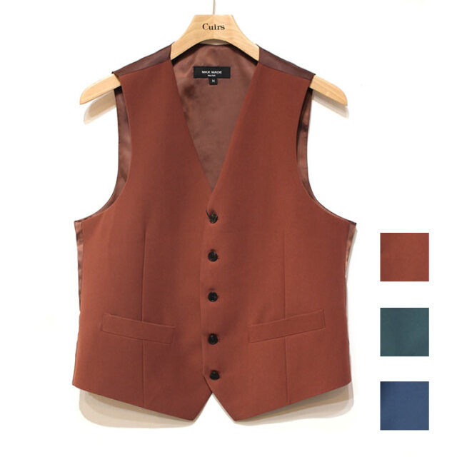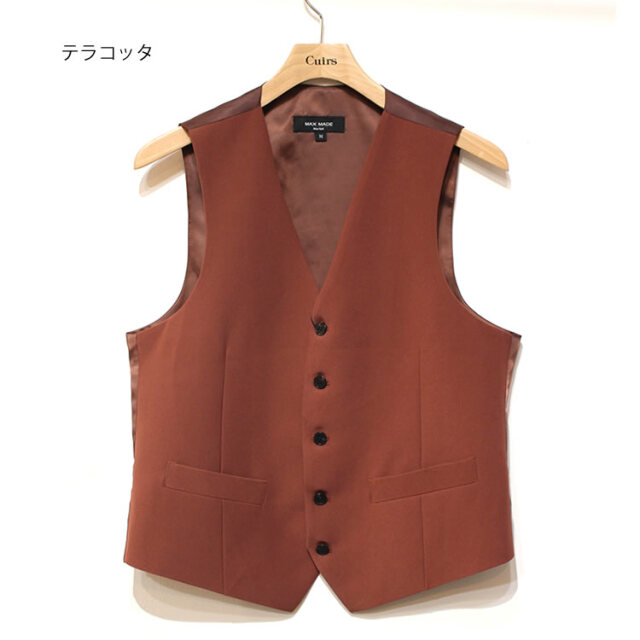 キュイー発信 パントンカラースリーピースセットアップベスト登場!着用した際のVラインがキレイな着こなしをシャープに仕上げてくれるオーソドックスなベスト。