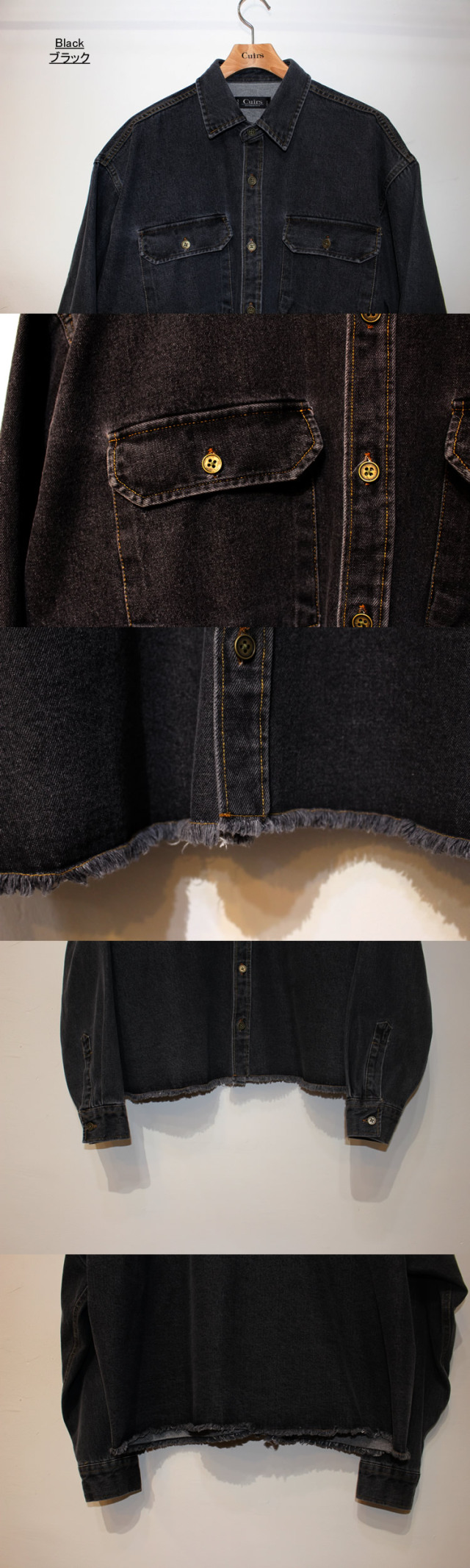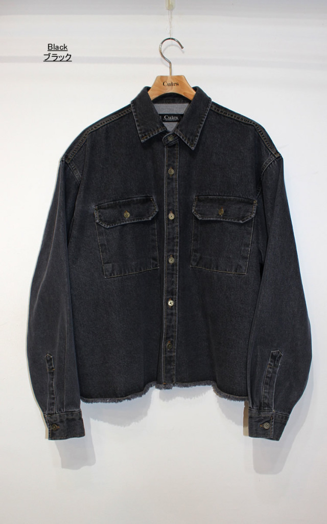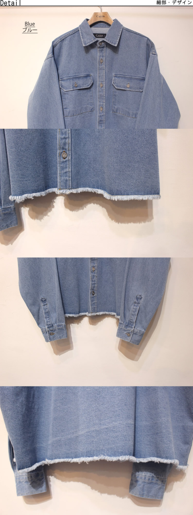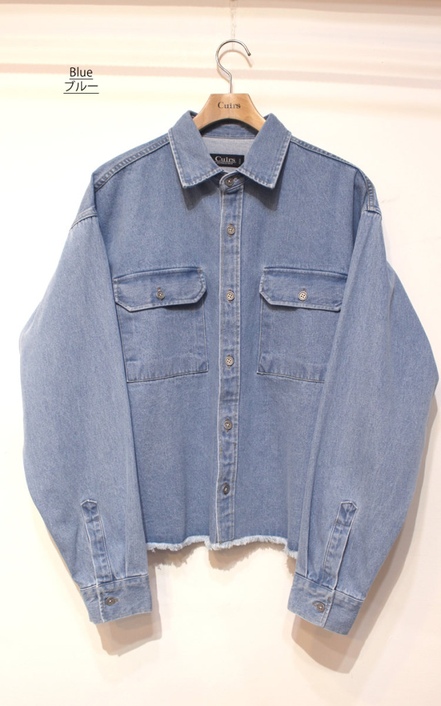 キュイー発信 裾にフリンジカットを施し、程よいラフさとヴィンテージ感を演出したデニムウオッシュカティングシャツ入荷! ウォッシュド加工によって表面に柔らかな風合いと奥行きのある色落ちを表現し 着るほどに身体になじむナチュラルな経年変化を楽しめる! 胸元には実用的なポケットを装備し、ワークシャツらしい機能性とデザイン性を両立! タフなデニム素材を使用しながらも、軽やかで動きやすい仕上がり! ややショートなクロップ丈で一枚着としてはもちろん、アウター感覚で羽織ってもサマになる万能アイテム! ラフなフリンジ裾がコーディネートに抜け感をプラスし、ワークテイストの中にもこなれた雰囲気を漂わせるクロップデニムシャツ! ブルー・ブラックで登場!