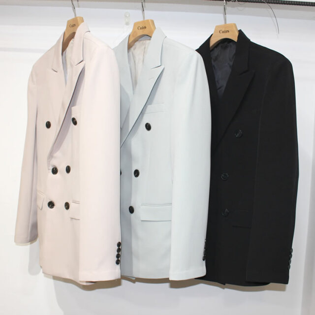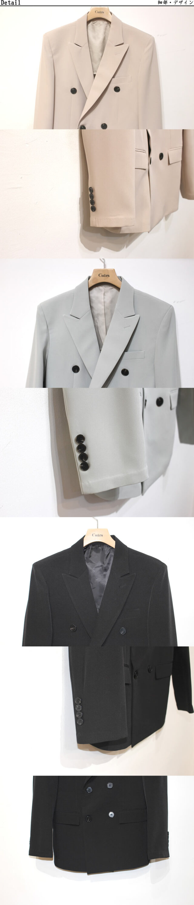 キュイー発信 新色入荷!テーラードセットアップWジャケット!スタイリッシュなテーラードジャケットがWで登場!高級感あるテーラードジャケットは大人っぽく仕上がっている!素材はポリエステル100%を使用しさらさらとした使用感は夏の着こなしに最適!