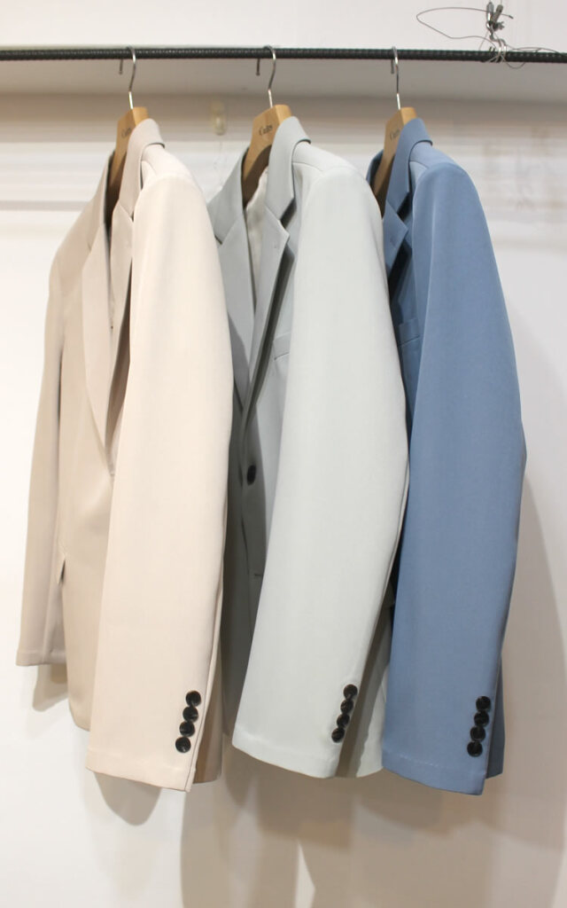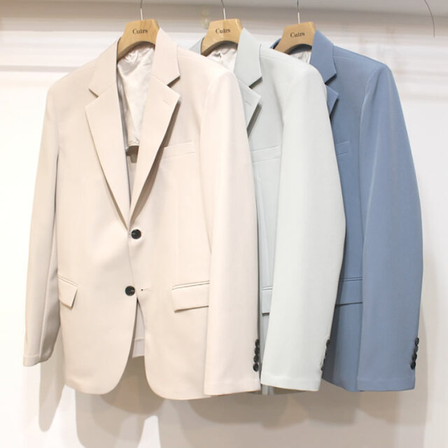 キュイー発信 テーラードスリーピースセットアップジャケット!スタイリッシュなテーラードジャケットが登場!高級感あるテーラードジャケットは大人っぽく仕上がっている!素材はポリエステル100%を使用しさらさらとした使用感は夏の着こなしに最適!セットアップパンツでスーツとしても◎S/M/L3サイズで登場!