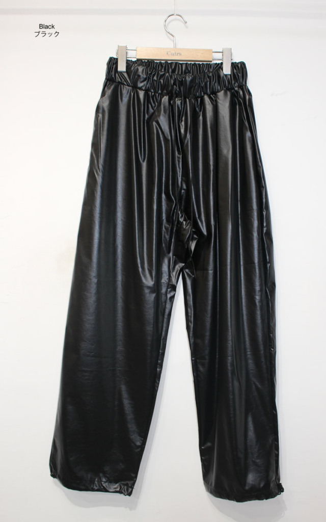 ウイングレザーワイドパンツ入荷!光沢感あるフェイクレザーはソフトな風合いで着まわしやすい!