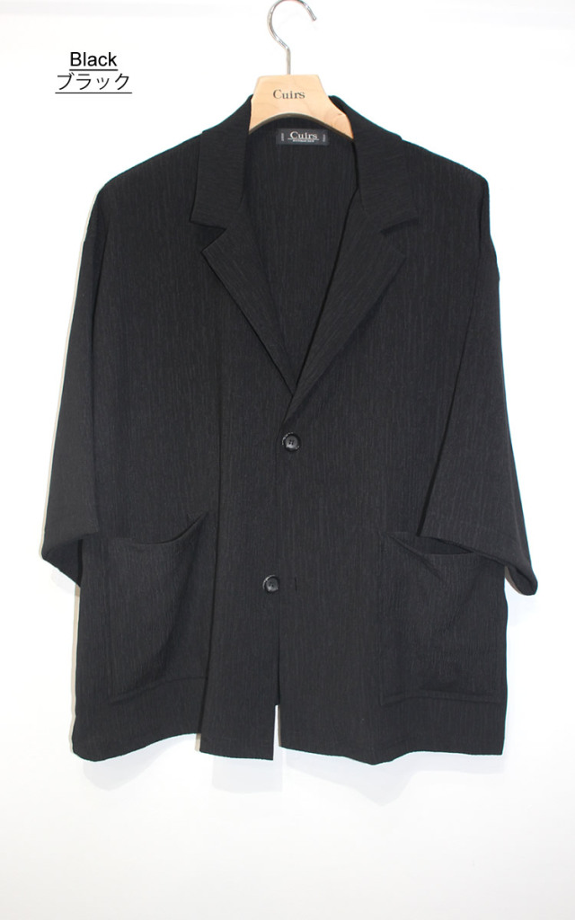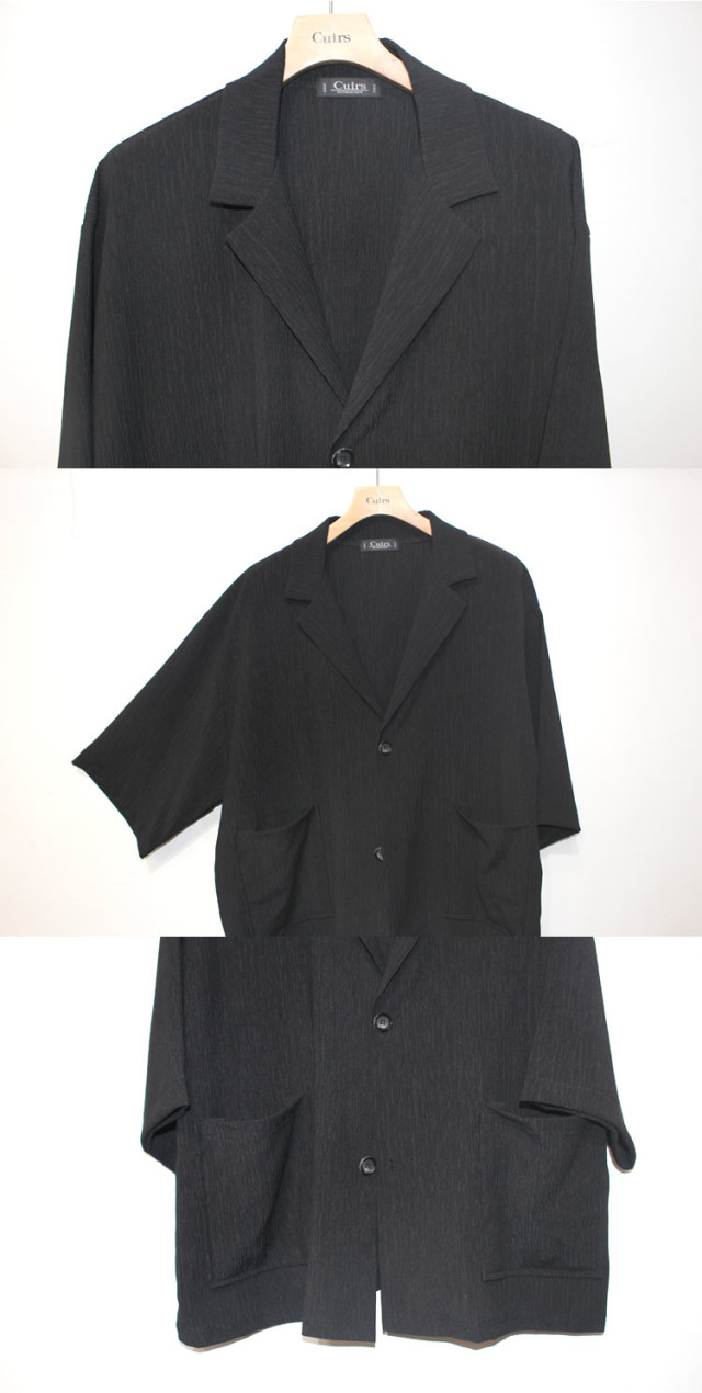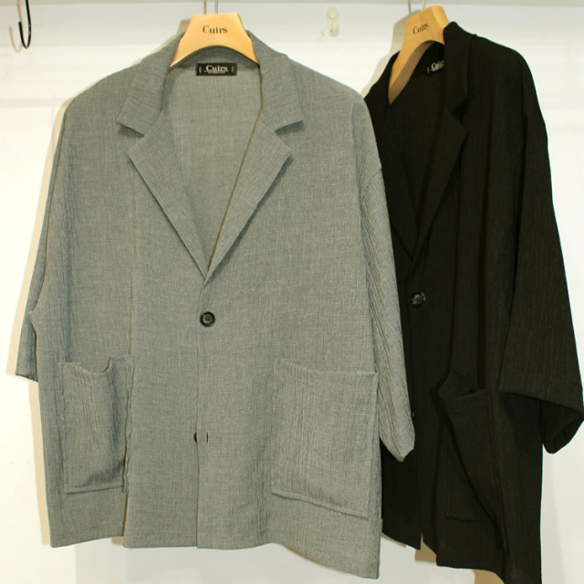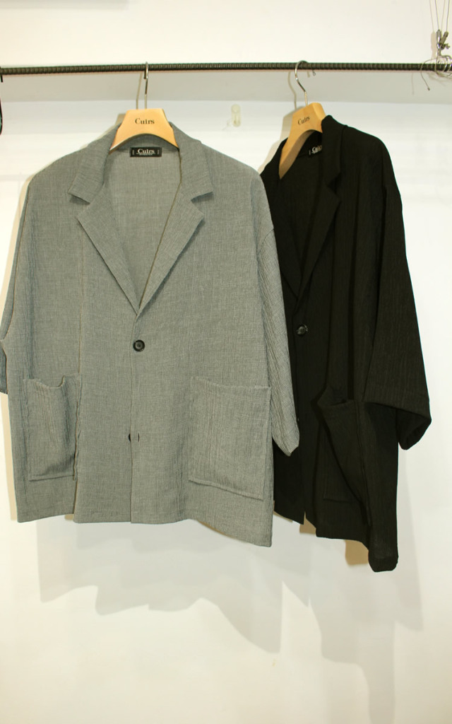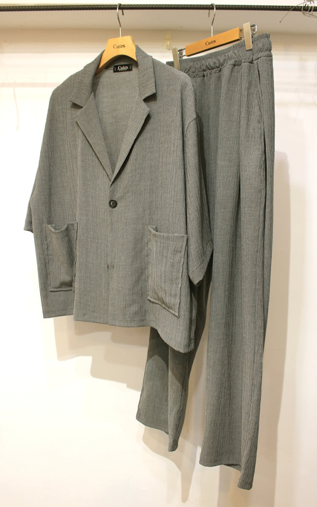 キュイー発信 ウエーブプリーツセットアップJKT登場!ニュアンスのあるウェーブプリーツでこなれ感ある一枚。リラクシーながらも落ち感のあるシルエットでスッキリとした着こなしに! 伸縮ある高見えする生地でしわになりにくく一枚はもちろんTシャツやタンクトップをインして羽織物としてもおすすめ! パンツも登場でセットアップとしてスーツとしても着まわせる!グレー・ブラック2カラーで登場!