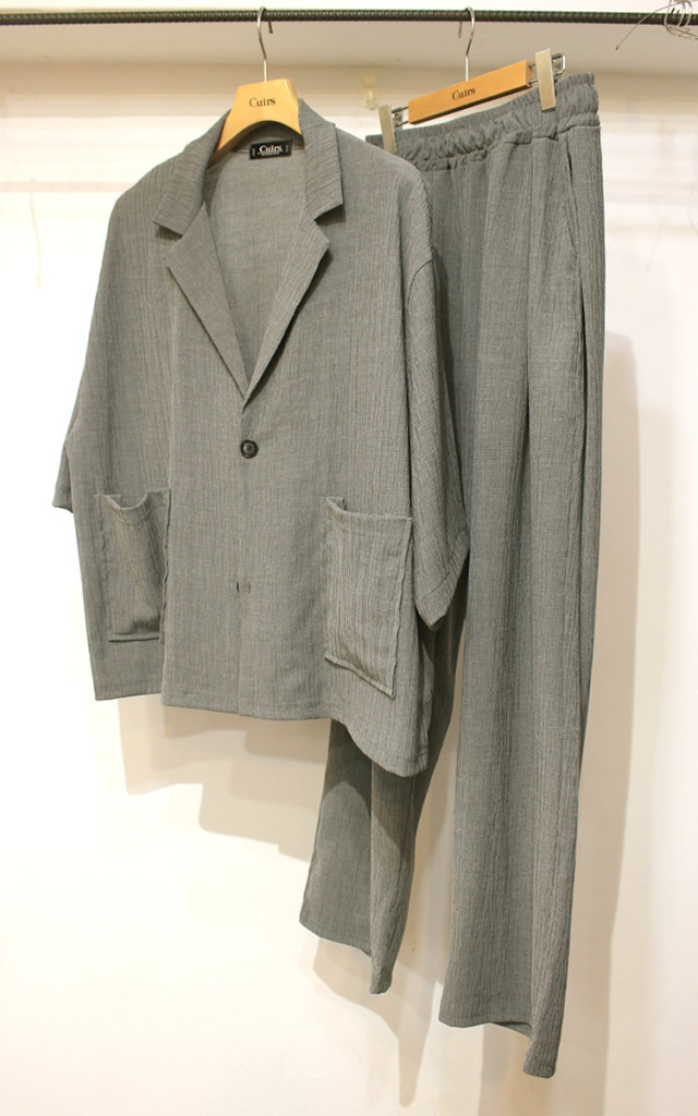 キュイー発信 ウエーブプリーツセットアップパンツ登場!ニュアンスのあるウェーブプリーツでこなれ感ある一枚。リラクシーながらも落ち感のあるシルエットでスッキリとした着こなしに! 伸縮ある高見えする生地でしわになりにくく夏の着こなしに最適! ジャケットも登場でセットアップとしてスーツとしても着まわせる!グレー・ブラック2カラーで登場!
