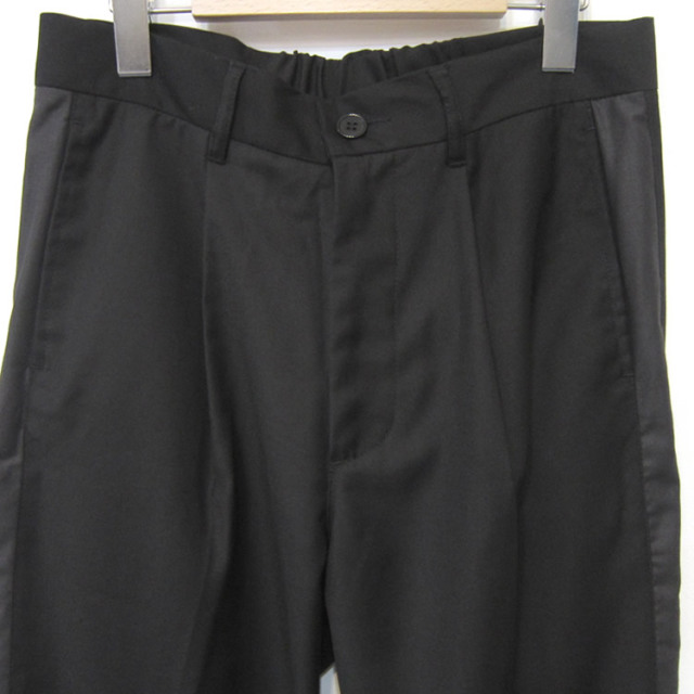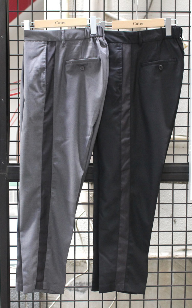 キュイー発信 タック入りトラックパンツ登場!やや薄手生地を使用した3シーズン使えるトラックパンツ!タック入りでウエストラインがキレイに収まる。ラインも程よくアピールしてキレイメなスタイリングに最適!後ろウエストはゴム仕様で伸縮し3サイズでもあり選びやすい!