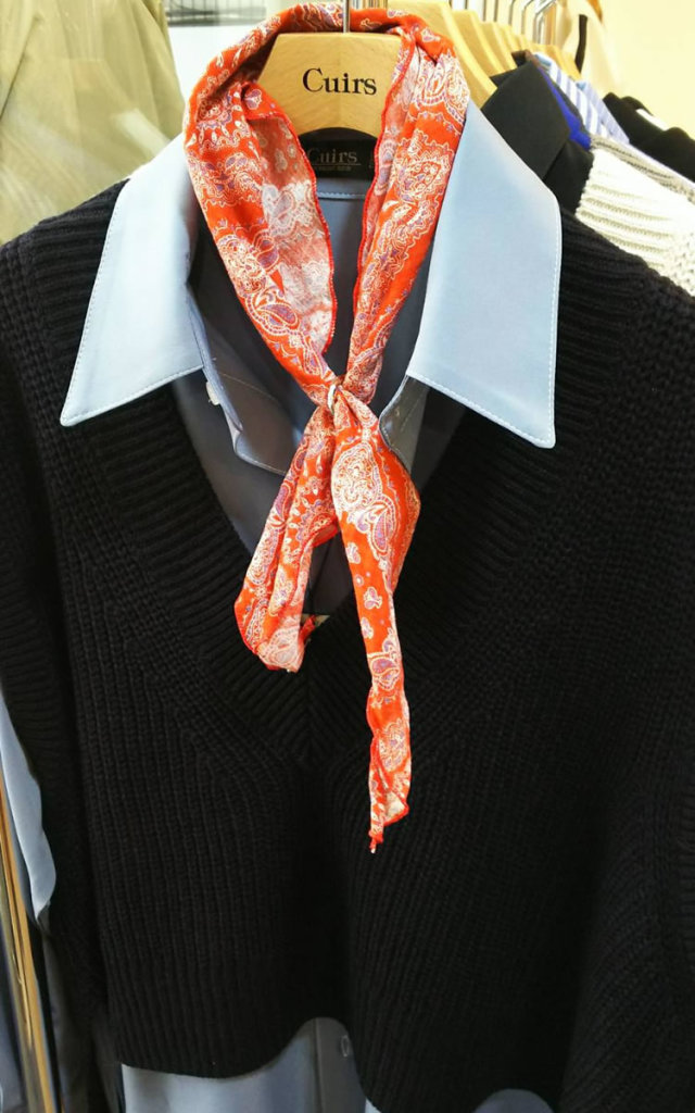 リング付きスカーフ登場!首や腕に巻いたり色々なアレンジが楽しめるリング付のスカーフ!
