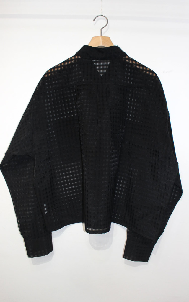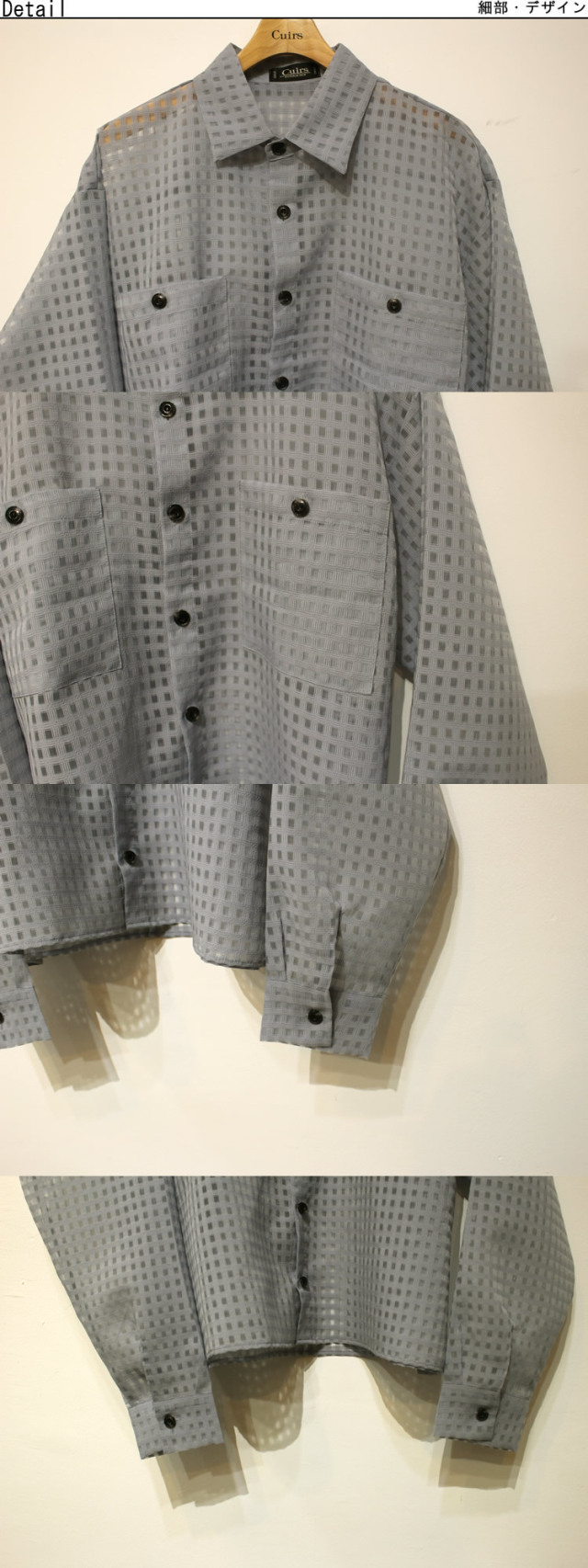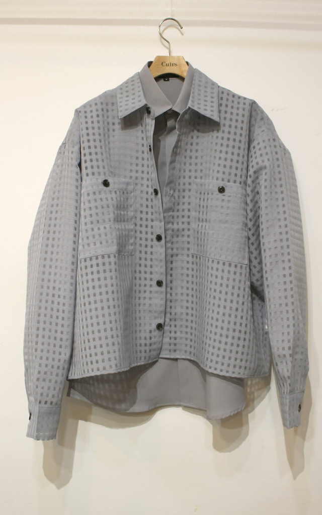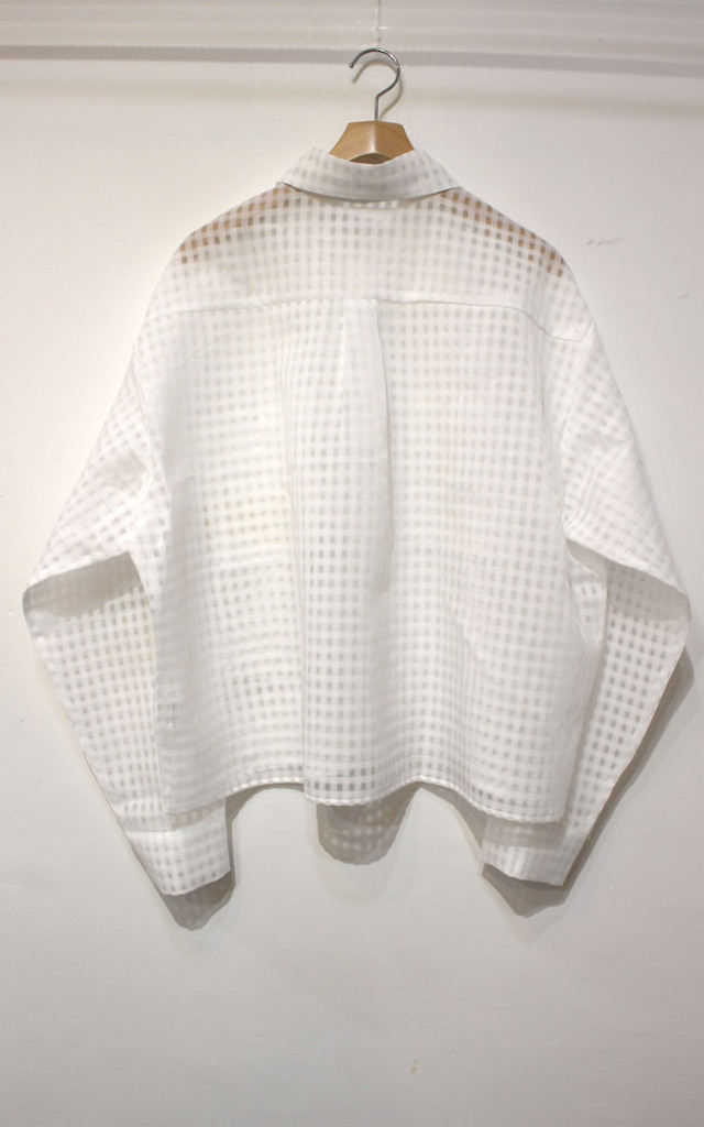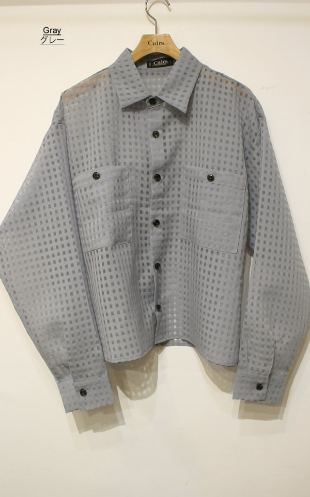 キュイー発信 シースルーチェッククロップシャツ入荷! 透け感のあるシアー生地にチェック柄がインパクトあるシースルーシャツ! ややゆったりとしたサイジングは一枚でも重ね着でも個性ある着こなしを演出する! カラーはシンプルなグレー・ホワイト・ブラックで入荷!
