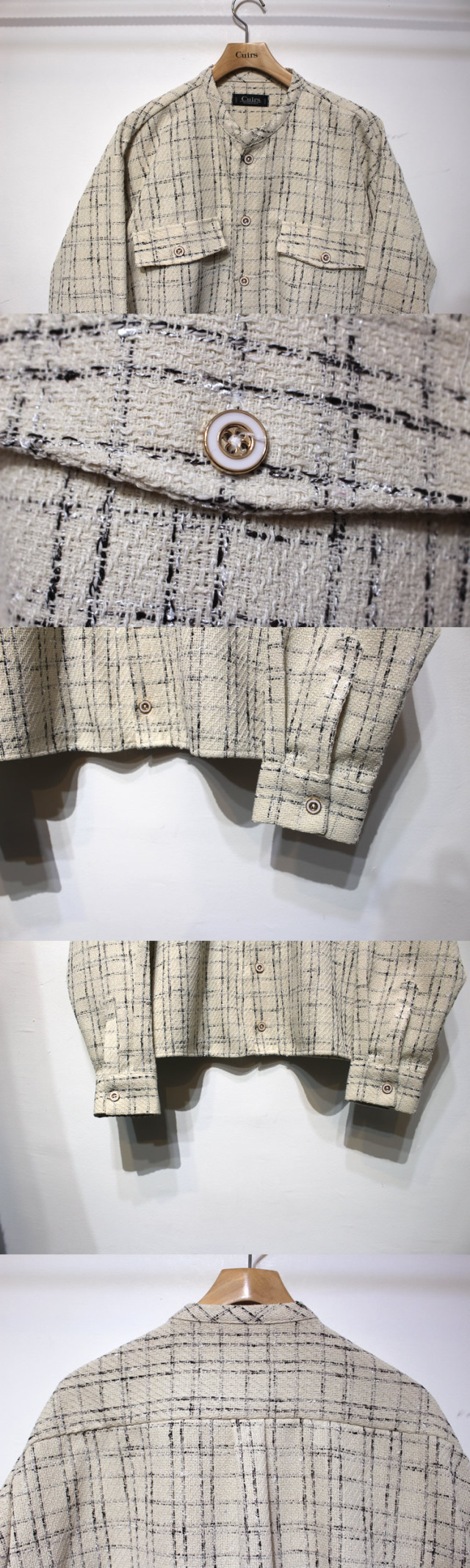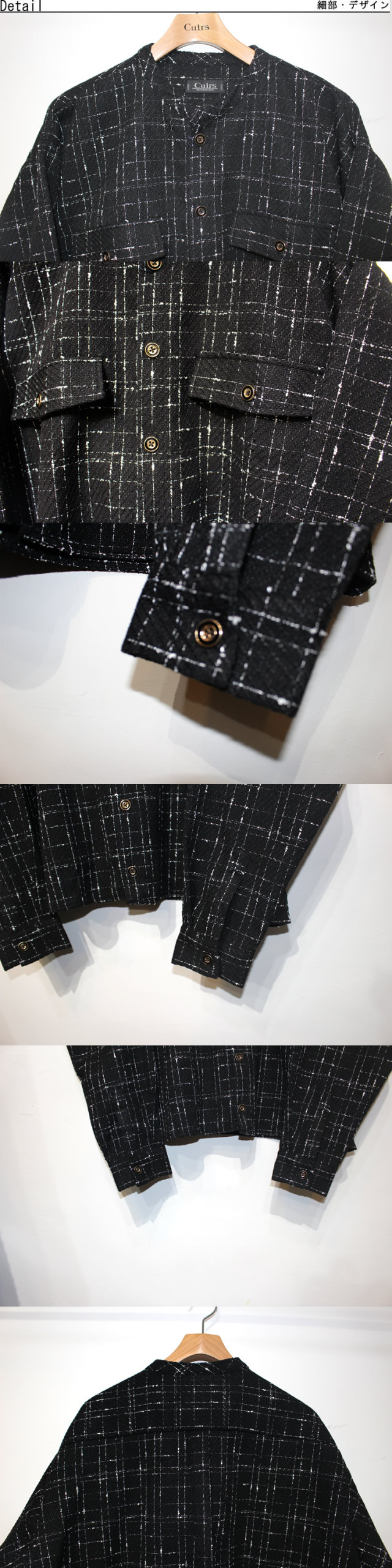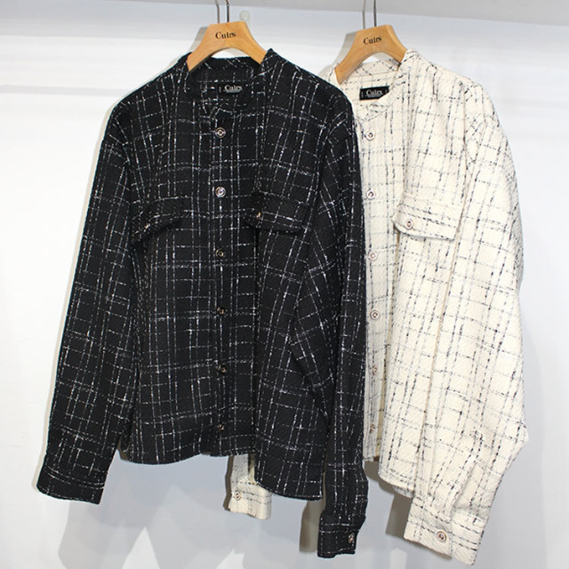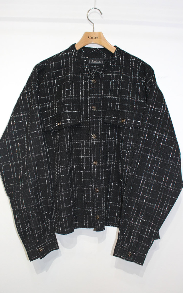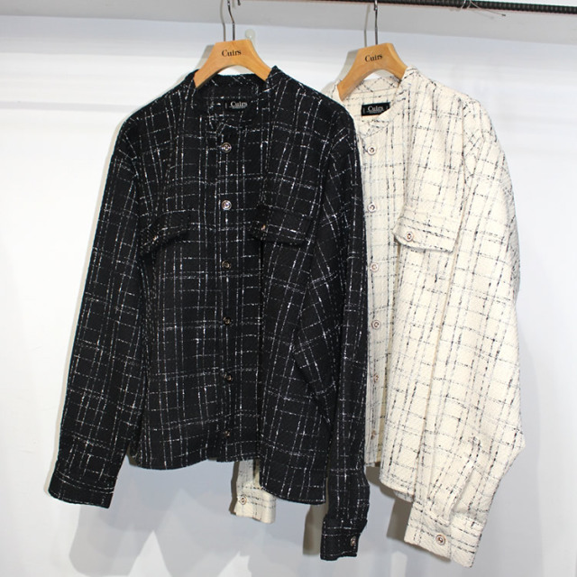 キュイー発信 チェックツイードバンドカラークロップシャツ登場!ツイードに編みたてた凹凸のある立体的な表情が印象的なアウターシャツ!トレンド感満載のルックスでスタイリングに取り入れれば一気に鮮度が上がる!映え感のあるデザインは一枚で着こなしはもちろんTシャツやカットソーとの相性も抜群!シックなモノトーンで派手すぎない印象のため、幅広い大人カジュアルにも最適!2カラーで登場!