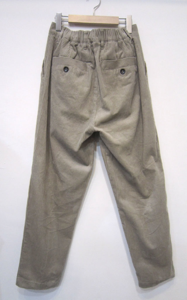 キュイー発信 テーパードコーヂュロイパンツ登場!秋冬らしさのあるコーデュロイ生地を使用した。ワイドパンツながらテーパードシルエットをプラスしカジュアルすぎない上品な表情に仕上がった!腿から膝下にかけて自然にテーパードされている「テーパードシルエット」は美脚効果も◎ 暖かみのある綿100%を使用し程よい厚みに仕上げた!秋冬シーズンのスタイリングに取り入れたい大人コーヂュロイ2カラーで登場!